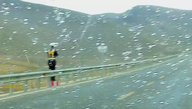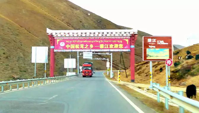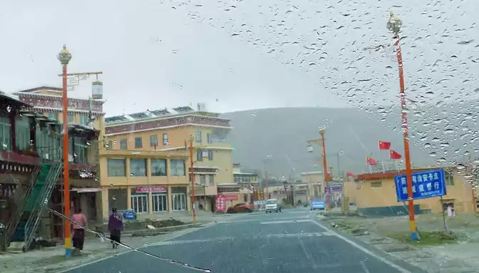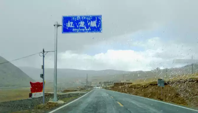 At 15:21, it passed through the "Big Riverside" public security checkpoint in Litang County, but it was still unattended. Two minutes later, through the archway of "China's Matsutake Hometown - Yajiang Welcomes You", we left Litang and entered Yajiang County, which is 120 kilometers away from Yajiang County. At 15:28, it encountered sleet and drove through "Red Dragon Town" at 15:49.