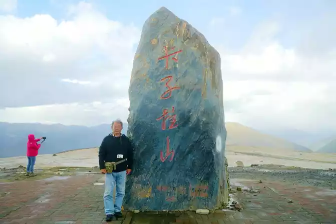 Soon after driving out of Honglong Town, it began to climb over the "Kazila Mountain", which is also a big mountain across the Sichuan-Tibet line, and no tunnel has been built so far, and it must be crossed. At 16:23, we arrived at the pass of Kazila Mountain, where there is a large observation deck, but there are no other facilities except for a public toilet and a huge stone monument. The wind was strong and the temperature was low, and I couldn't see the scenery after the rain, so I took two photos, then hurriedly boarded the car and set off again.
