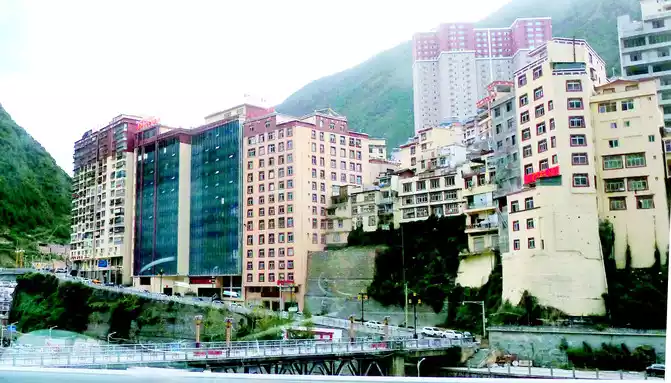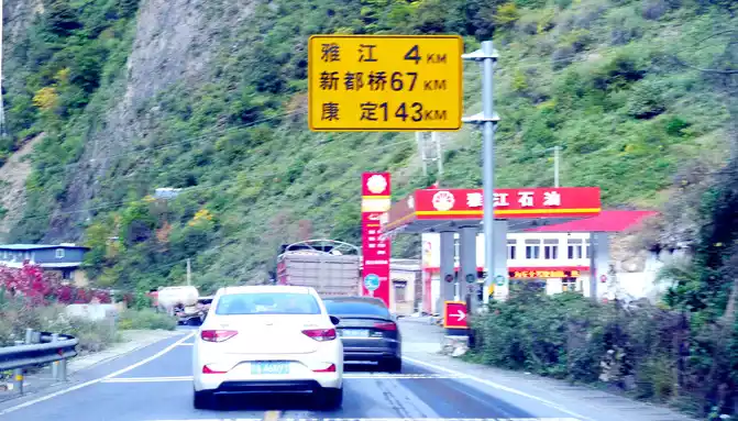 At 18:04, we arrived at Yajiang County, which is 2,600 meters above sea level and is located on the banks of the Yalong River, and the city is mainly built on the right bank of the Yalong River, and it is full of high-rise buildings as far as the eye can see. I thought I was going to stay in Yajiang City, and I was looking forward to taking this opportunity to see what the town was like, but after asking X.J., I found out that he did not book a hotel in the county seat, but chose a "Ling Miya" cultural hotel outside the city, because it is said to have a lot of "taste". Therefore, the "navigation" guided us to bypass the county seat, cross the bridge to the left bank of the Yalong River opposite the city, and then pass through a short tunnel through the mountain, leaving the city without entering the city, and driving straight in the direction of Xindu Bridge. Voice navigation report: The destination is about 20 kilometers ahead, which makes me very suspicious, what kind of hotel did X.J. book, and how could it be so far from the county seat?