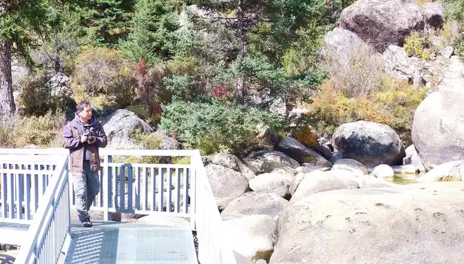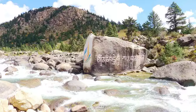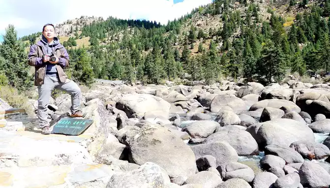 The park is quite large, far from just a roadside observation deck, and X.J. loves natural landscapes and is also in high spirits. In the process of playing and walking, we found that as a "Shihe Park", it was actually just a small section of the natural stone river, and the two walked through this small section of the river from beginning to end until 12:12. However. When we wanted to leave, we found that there was actually only one opening in and out of the park next to the road, and we had to pass by the local Tibetan stalls to come and go.