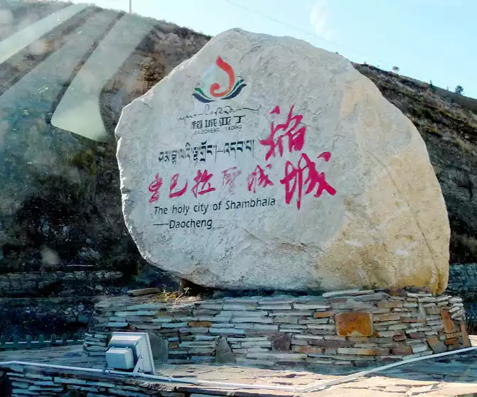 On October 11th (D8), yesterday evening from Aden Scenic Area to Daocheng County (Jinzhu Town), stayed in the "Holy Land Image" hotel in the city, today's plan is to return to Yajiang from Daocheng, compared to coming from Xindu Bridge three days ago, staying in Shangri-La Town, today should be much easier, because there are two fewer sections: the front is missing (Shangri-La Town →Daocheng) section, and the back is removed (Yajiang → Xindu Bridge) section, therefore, I am full of confidence that I will be able to make it to Yajiang before sunset. I had more time, and I got up late in the morning, going downstairs to have breakfast at 8:33 and checking out at 9:20. There is a "Qingyanglin Observation Deck" near the hotel, and after departure, I decided to go there first, and halfway to the middle of the way, I saw the "Aden Gas Station in Daocheng County", and stopped to refuel. At 9:34, we arrived at the Qingyanglin Observation Deck, and there was a boulder next to the parking lot, inscribed with "Daocheng Shambhala Holy City".