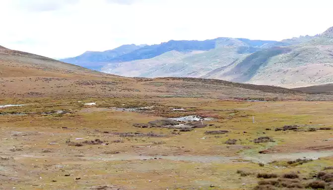 Climbing to the highest point is the flat top of Haizi Mountain at an altitude of 4,500 meters, overlooking the endless view, it is hard for me to imagine that this large plain is actually the top of a big mountain. 12:37 Pass through the "Observatory" intersection, which is our country's high-energy cosmic ray observation base. 12:43 Through the "Xingyituo" intersection, Xingyituo is the largest water surface on Haizi Mountain. At 12:47, drive past the Haizi Mountain Observation Deck, and walk another three kilometers to the "Daocheng Ancient Ice Cap Viewpoint", which is known as the world's largest ancient ice sheet relic. Stayed here three days ago and will not park today.