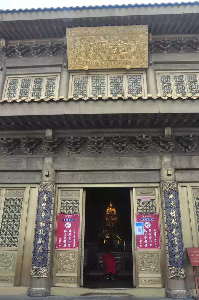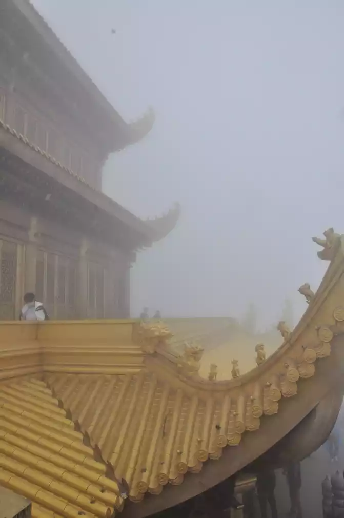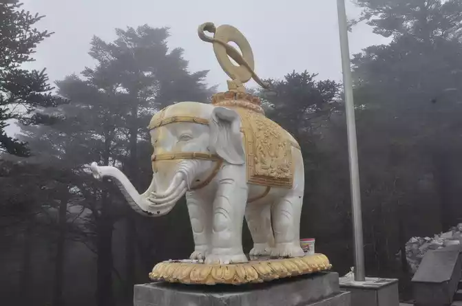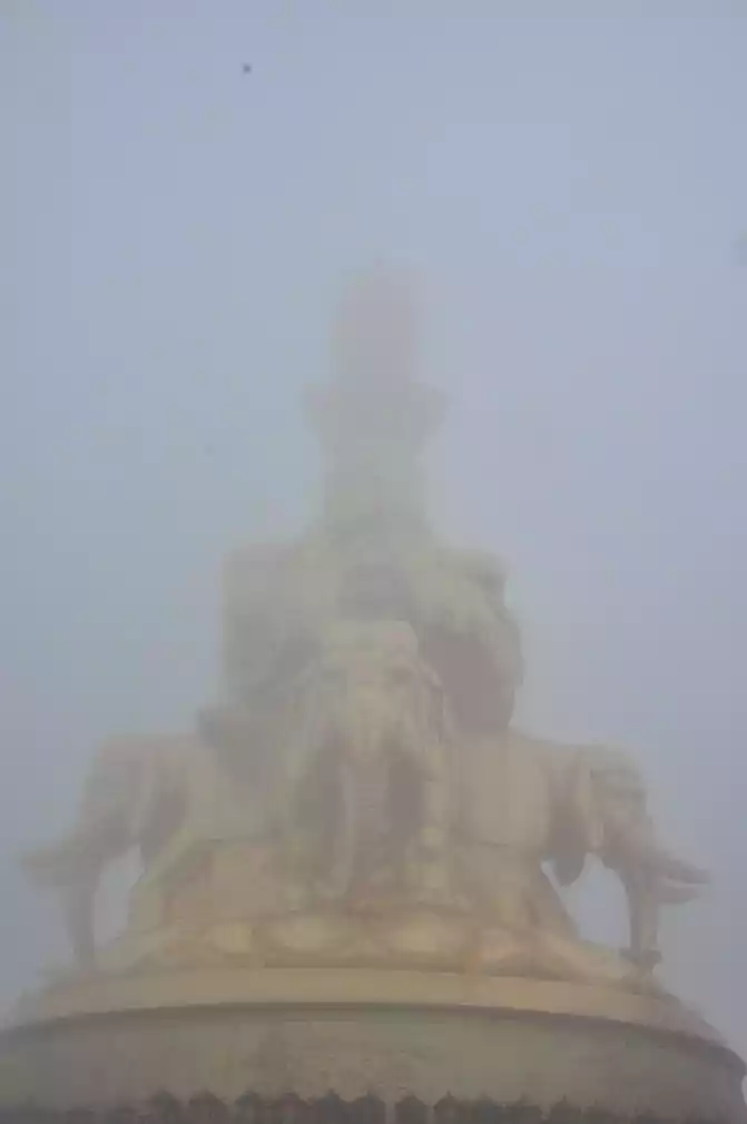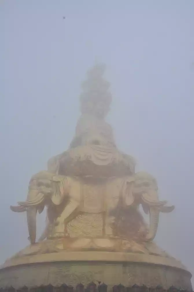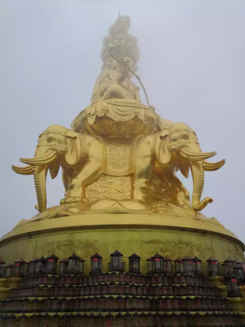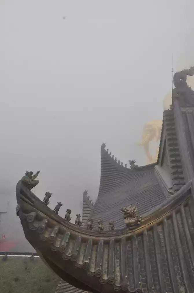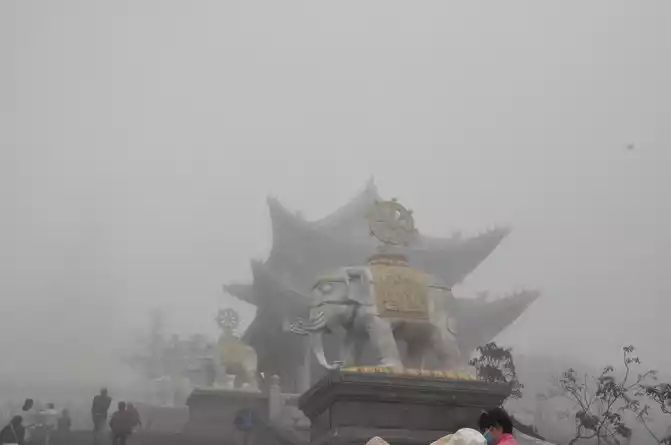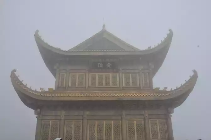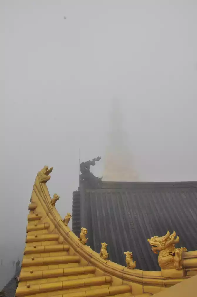 This golden statue of the Ten Directions of Puxian is a building that we did not have last time to the Golden Peak, and viewing this building should be one of the purposes of our trip, but the sky is not beautiful, sometimes thickly covered, sometimes lightly wiped, so that we are vaguely indistinguishable from the true appearance. I had no choice but to enter the room, and the various halls were also shaking, rubbing shoulders and heels, and did not stop. The observation deck outside the hall overlooks the vast white sky, and nothing can be seen. Seeing that the weather would not improve, I had to withdraw.