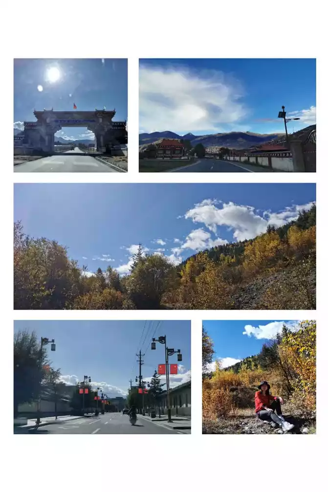 Because the road was long today, when we set off from Wengda after 7 o'clock, it was not yet dawn, and it was drizzling outside, and it was foggy everywhere. When I arrived at Luhuo, the sky cleared, the road surface has always been very good, this road is green trees and red walls, there are many leisurely yaks on the road, and I am not afraid of cars, often standing on the road The old god is there, you can only wait for it to walk slowly or not move, there is no way. When I arrived at Daofu, I encountered a long way of colorful forests, where red, yellow and green shone brightly in the sunlight, and I walked through them to know that this colorful forest was a scenic spot in Daofu. The streets along the way are flying five-star red flags, the furnace is large, and the eight beauties are tidy.