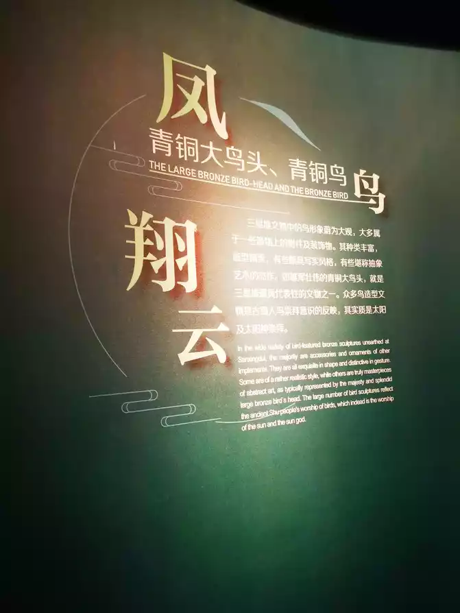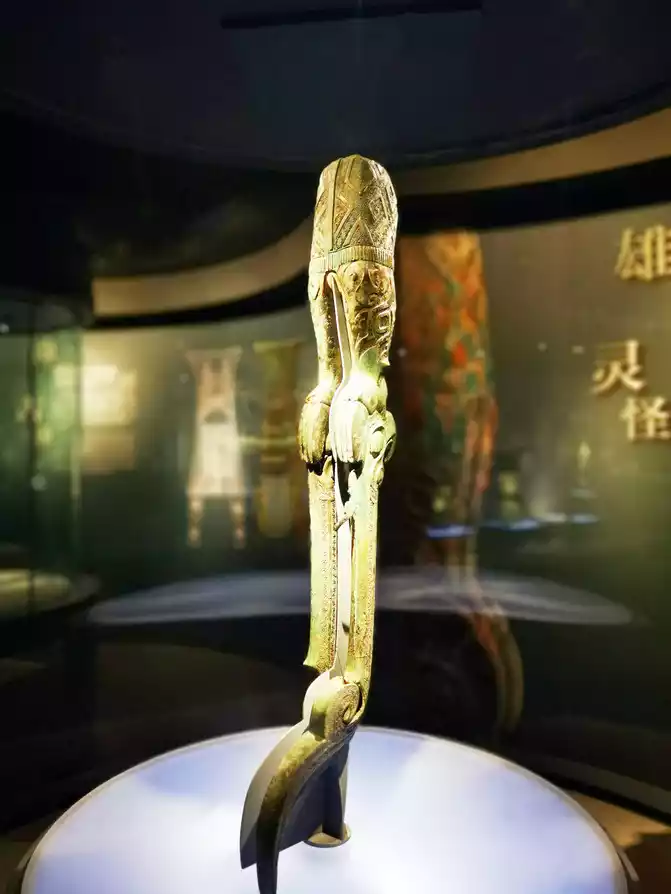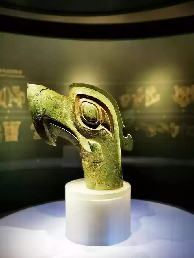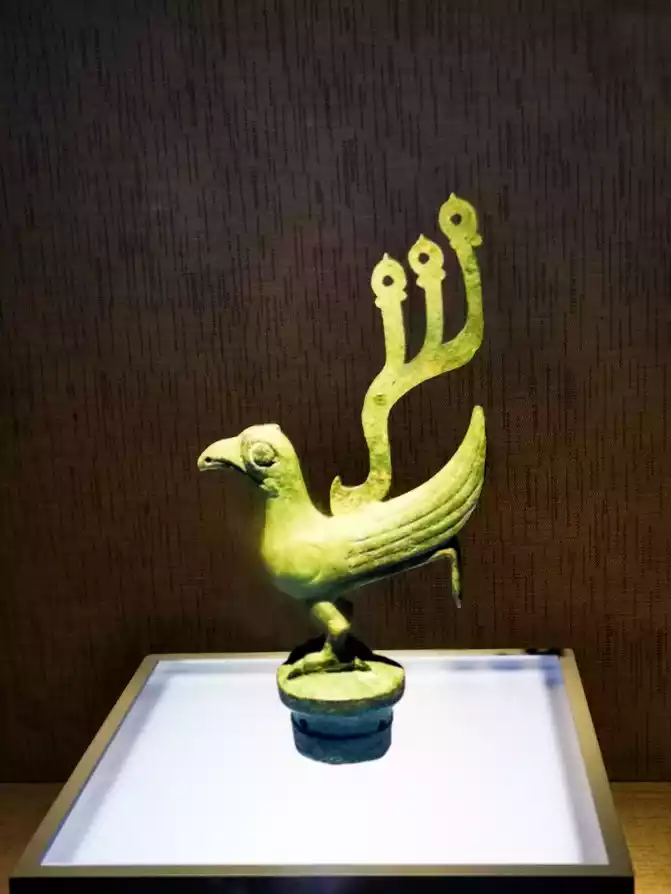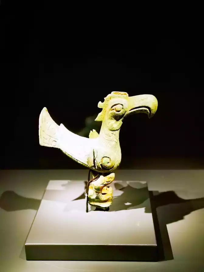 With a height of 40.3 cm, simple shape, smooth lines, huge eyes, and a similar image to an eagle and an osprey, it may be a decoration on the temple building, or it may be installed on some object, as a symbol of the use of the ceremonial guard, the status is respected, and it is the largest of all the bird-shaped cultural relics in Sanxingdui.