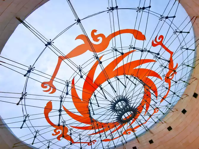 two main buildings of the Jinsha Site Museum are the relic hall and the exhibition hall, both of which adopt the way of slopes, symbolizing the rising of the Jinsha site, the relic hall is nearly circular, the exhibition hall is square, and the circle symbolizes the cosmology of the ancient Chinese people's round place, and the two buildings are distributed on the north and south banks of the Modi River, complementing each other and integrating with the garden area. The Relics Museum is the excavation site of the large-scale sacrificial activity site of the Jinsha site, and is currently the most complete, longest-lasting and richest sacrificial relics in China. Since the discovery of the Jinsha site, tens of thousands of precious cultural relics have been unearthed, which is the most densely populated ivory (tons) in the world, the richest number of gold and jade sites unearthed in the same period, noble and brilliant gold, mysterious and strange bronzes, brightly colored jade and vivid and realistic stone tools, all of which are the crystallization of the wisdom of the ancestors of ancient Shu, especially the gold ornaments of the sun god bird, gold masks, ten-section green jade cong, bronze standing people and thousands of rare treasures with ancient Shu art style. It shows us a glorious ancient Shu civilization 3,000 years ago.