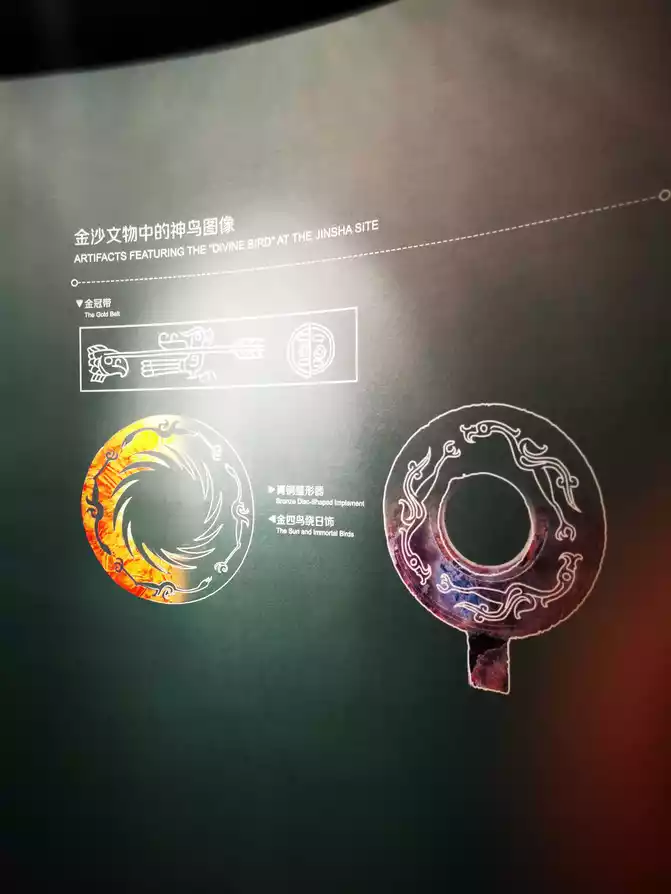 The "Sun God Bird" is the pinnacle of the golden art of the ancestors of ancient Shu, the treasure of the town hall of the Jinsha site, and one of the top cultural relics prohibited from being exhibited abroad in our country, ranking among the nine national treasures in China. Unearthed in 2001 in the sacrificial area of the Jinsha site, it was announced as a Chinese cultural heritage symbol in 2005, with a diameter of 12.5 cm and a thickness of only 0.02 cm, made of very thin gold leaf, with a gold content of 94.2%, the gold ornament pattern is divided into two circles inside and outside, the inner circle rotates the fireball symbolizes the sun, and there are twelve equally distant clockwise rotating rays of light around it, representing the cycle of twelve months, and the outer circle is connected by the heads and feet of four divine birds that spread their wings and fly, flying endlessly around the sun. The direction of flight is opposite to the light of the inner sun, which is exactly in line with the legend of the "golden crow negative sun" in the ancient myth "Classic of Mountains and Seas", and the ancient Shu people wantonly conveyed their worship of the gods with smart images.