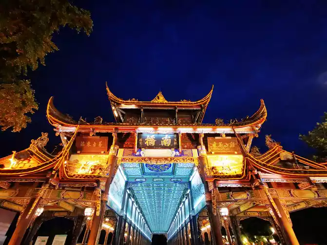 Get off at Tonghuimen Station of Metro Line 2 or Kuanzhai Alley Station of Line 4, and it is very convenient to reach Kuanzhai Alley, which is three parallel arrangements of Qing Dynasty ancient alleys, namely wide alleys, narrow alleys, and well alleys, all of which are antique courtyards of green dai bricks and tiles, which are relatively large-scale ancient streets of the Qing Dynasty left over from Chengdu, and are known as the three major historical and cultural city protection blocks in Chengdu along with Daci Temple and Wenshu Monastery. The wide alley is 7 meters wide, showing the "leisurely life" of old Chengdu, the narrow alley is 5 meters wide, showing the "slow life" of old Chengdu, there is naturally an old well in the well alley, showing the "new life" of old Chengdu, and the entire wide and narrow alley shows the past, present and future of Chengdu, which is the best embodiment of Chengdu's leisure city and market life. At night, the wide and narrow alleys are crowded, the alleys look more beautiful against the backdrop of the lights, the tall lanterns are hung, the branches of the law cover many standard courtyards, high gate towers, deep house walls, green bricks and gray tiles, each house must have a lot of legendary stories, ancient buildings, petty bourgeois shops, noisy groups are blended together, people enjoy the leisure life of summer nights here, especially the dragon-shaped carving at the gate of the small dragon over the river, and the three-dimensional tall horse in front of the bolt stone, lifelike and flexible, Attracted tourists to stop.