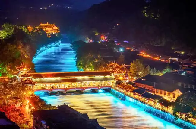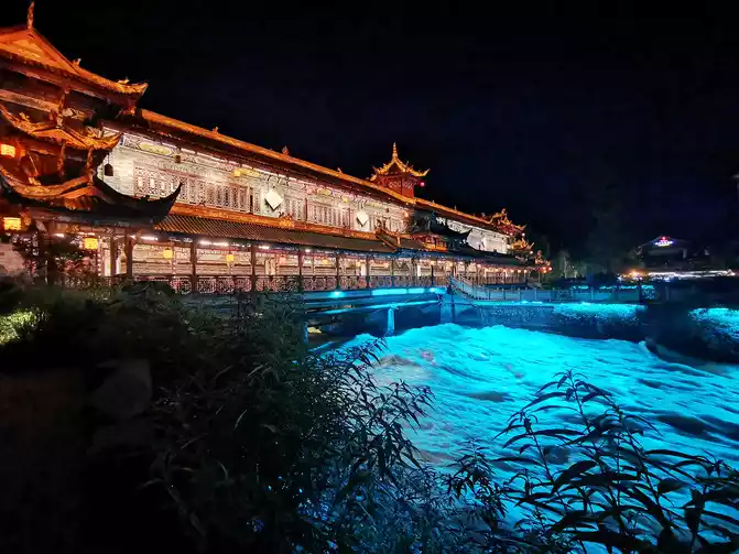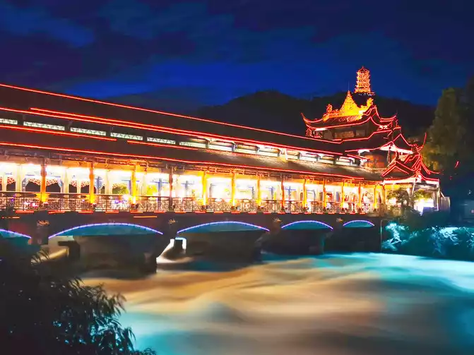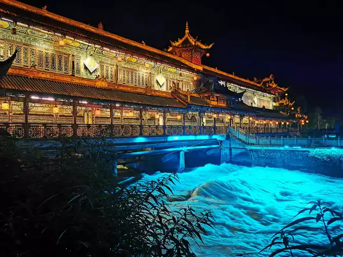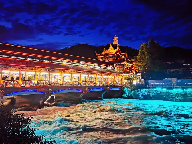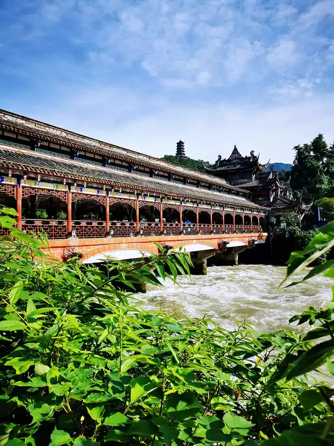 It is the key pass of the ancient Sichuan Plain, one of the nine gates of the ancient city of Guanxian County, and it is also a scenic spot next to the ancient dam for more than a thousand years, known in history as the "key key to western Sichuan", the eaves of Yulei Pass are warped, majestic and spectacular, looking down at the surging Dujiangyan, looking at the vast Qingcheng Mountain, and you can also take the mountaineering escalator to the top of the Yulei Pavilion, and have a panoramic view of the mountains and rivers of Dujiangyan at the highest point of Dujiangyan.