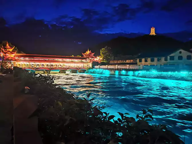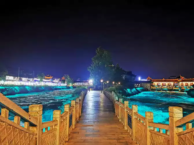 The South Bridge during the day is like a girl without makeup, quiet and elegant, and the South Bridge at night is more like a young woman with heavy makeup, flamboyant and plump, full of an indescribable charm, the lights reflect the Min River water into a soft turquoise blue, exuding a dreamy temperament, the roar of the Min River is deafening, the river is stirring, the flowing water is like a brocade, drifting into the distance, find a quiet corner by the golden South Bridge to blow the wind, quietly watch the golden lights, the deep blue night sky, the turquoise river rolls away, It seems that the passage of time is not felt.