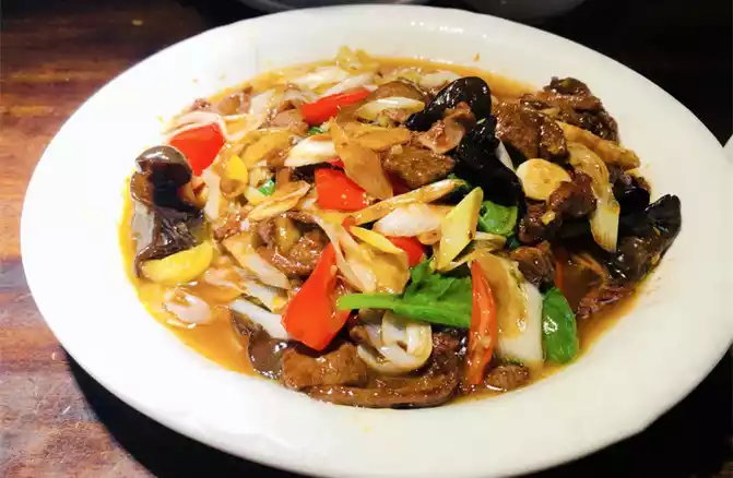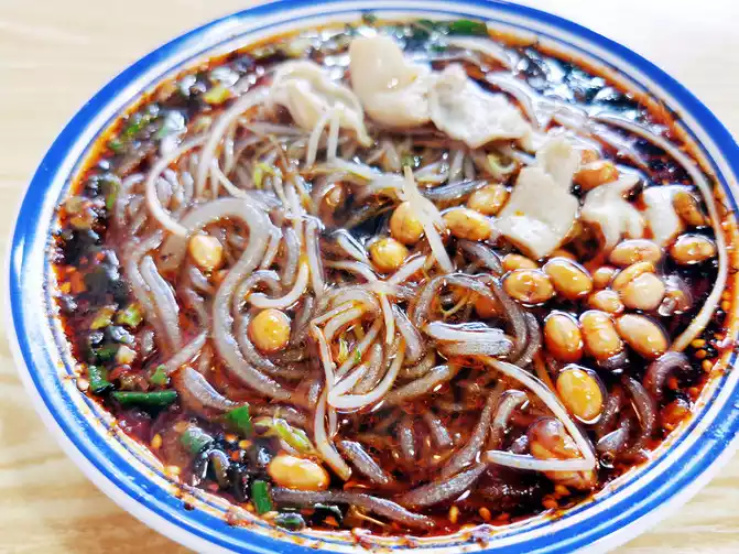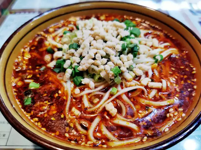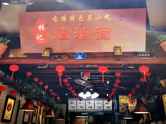 West Street is surrounded by mountains and rivers, wooden walls and tiles, green trees, gurgling river flows through the street, quite characteristic of a small town in western Sichuan, is the first street of the ancient tea horse road in western Sichuan with a history of hundreds of years, the alley lives in the older generation of West Street people, street and alley wine shops, the prosperity of the market for thousands of years, climbing the ancient city wall of the Ming Dynasty, standing on it and the roof is level with the roof, side by side with the blue sky, on the side of the bluestone road, a variety of characteristic shops are dazzling, tired of walking in Lin Ji slag noodles to put on a signature noodles, the heavy red oil floods the noodle mountain, and the top of the mountain is a layer of white chicken crispy whistle. Mix well and eat, the noodles are not soft or hard and chewy, with the aroma of red oil and meat, spicy and sweet.