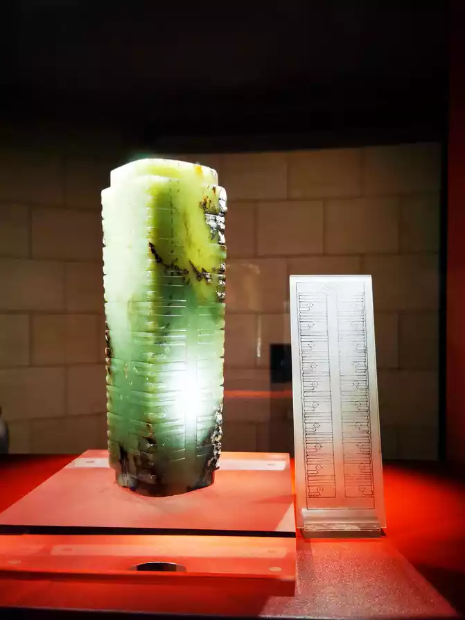 Jinsha Site, it is not the original of the Jinsha people, but from the Liangzhu culture thousands of miles away, Zhejiang's "Liangzhu Ancient City Ruins" has been included in the UNESCO World Heritage List, the two sites span thousands of years, but how can Liangzhu's jade cong suddenly appear in the distant Jinsha? The jade cong is 22.2 cm high, wide at the top and narrow at the bottom, square on the outside and round on the inside, running through a hole in the middle, the surface is emerald green translucent, the inside and outside of the vessel are polished and polished, the jade is smooth and smooth, the whole body is divided into ten sections, and at the turn of each section, you can see the divine face pattern decoration, which is exactly the same as the jade cong decoration unearthed in Liangzhu, the face of the god and the beast is like a symbol symbolizing the divine power hierarchy at that time, and it is also the iconic pattern of the Liangzhu culture, which belongs to the typical decoration characteristics of the jade cong in the late Liangzhu culture, and its carving technique is almost exactly the same as the production method of Liangzhu jade, and the craftsmanship is complex, which is a veritable piece "Imported Gifts".