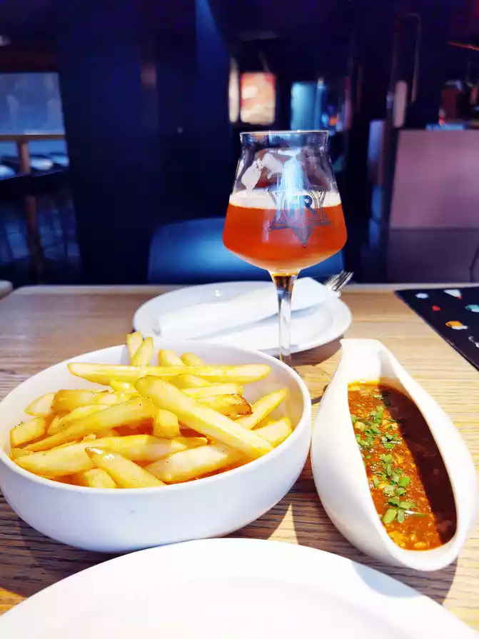 Sino-Ocean Taikoo Li Chengdu has now caught up with Chunxi Road, high style, tall, literary and artistic style, beautiful women gather, dressed fashionably, every day there are street photographers squatting, friends as craft brewing senior gourmets, naturally to do their best to do their best as landlords, take me to experience the most stylish craft bar in Chengdu Taikoo Li - FOAM RANGER Bubble Ranger, this is one of the most representative craft bars in China, 50 top craft beers are dazzling, friends ordered two representative fruity craft beers, suitable for girls, The foam of the wine body is rich, the aroma is fragrant, mixed with malt aroma, hop aroma and unique compound fruit aroma, can't wait to suck a mouthful of foam, the foam entrance is particularly delicate and smooth, and then take a sip of beer, delicious and rich, the beer tastes in the mouth for a moment, first the aroma of malt, and after swallowing it, it becomes a mouthful of fruit fragrance, here you can also feel the creative Western food that integrates Sichuan characteristics - Sichuan-style fries, the sauce is classic mapo tofu flavor, the taste is unique and novel, as a craft beer accompaniment is actually very coordinated.