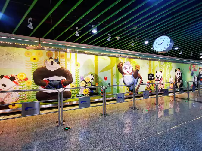 When you come to Chengdu, how can you not enjoy the cute and cute pet - the national treasure giant panda? Chunxi Road, Kuanzhai Alley and other city centers have scenic spot through trains to the panda base, I directly transferred from Metro Line 7 to Line 3 in the morning, got off at the zoo station, and there is a direct bus to the scenic spot at the subway entrance, whether it is a subway station or a bus, it is full of panda elements everywhere.