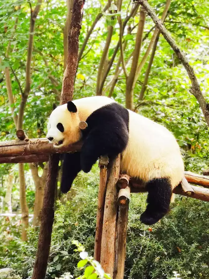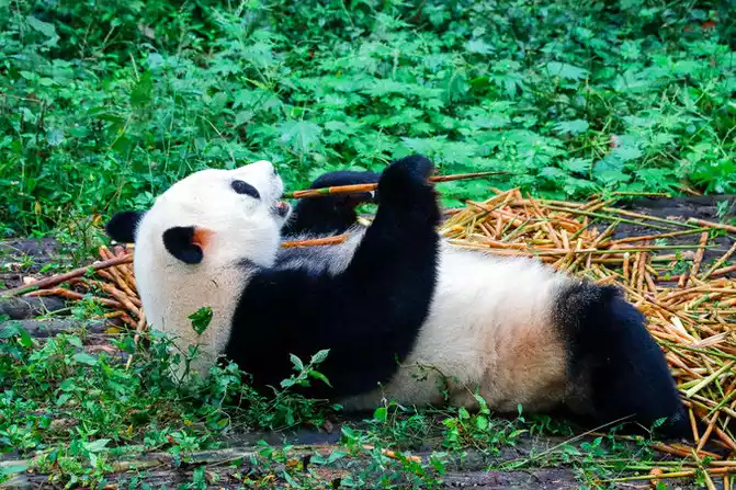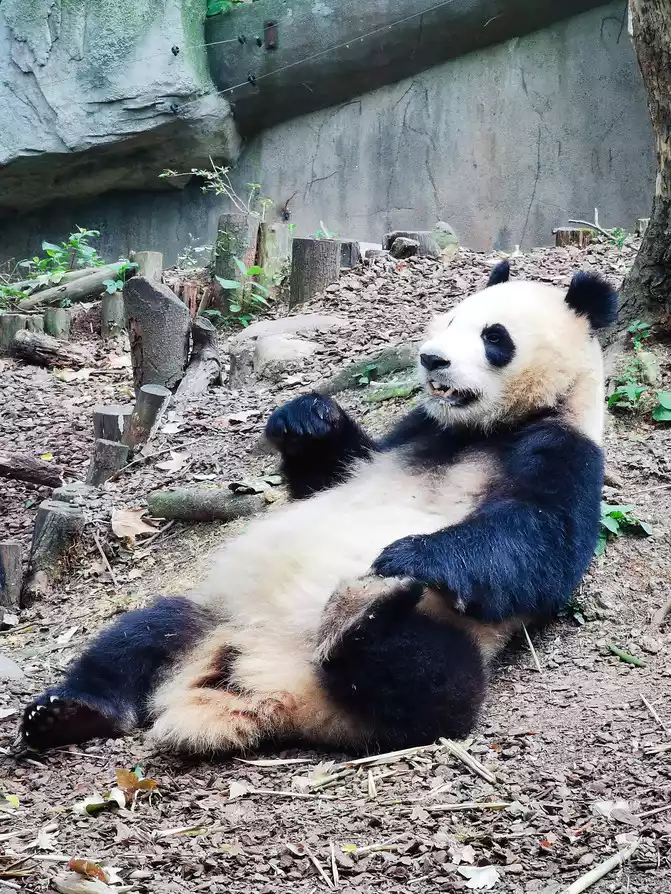 Adult giant pandas are meaty, round, lazy, they twist their buttocks when they walk, they only do one thing every day, eat bamboo, grab a bamboo and start to gnaw, the appearance of relishing makes people curious about how delicious bamboo is, eat bamboo in various postures, eat lying down, eat while sitting, eat by leaning on it, eat when you are full and drink, sleep in various positions while basking in the sun, sleep lying down, sleep on your stomach, sleep on your stomach.