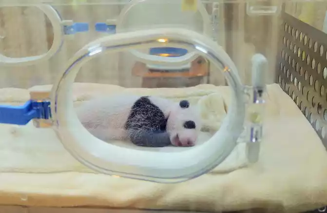 Of course, the most attractive thing is the baby panda in the delivery room, the baby panda in the warmer is pink like a little mouse, The slightly older panda babies are also soft, all soft and cute, completely capturing your heart (online borrowing picture).