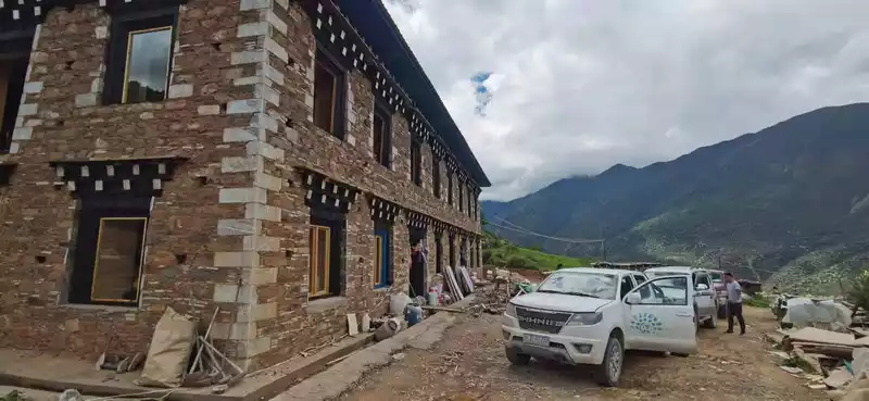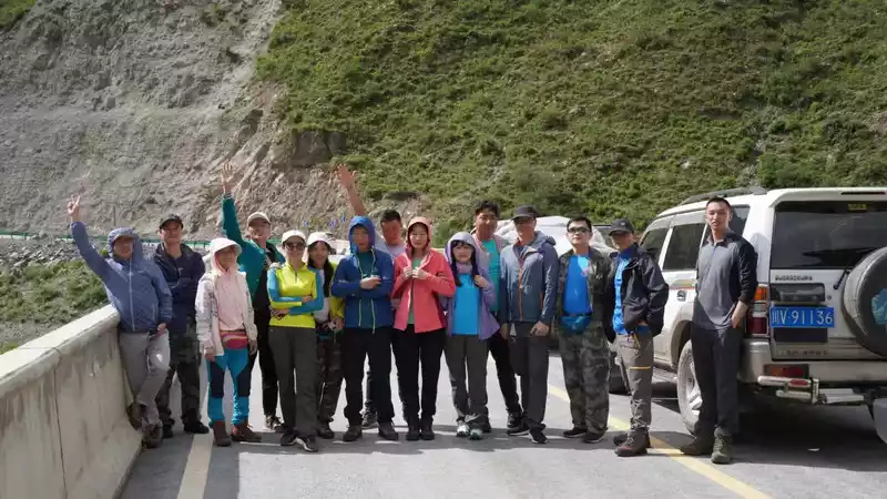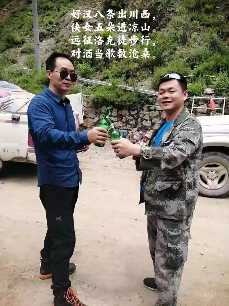 After breakfast early in the morning on the 11th, the teammates were indeed resurrected with full blood, and the rural comrades were even more energetic, talking and laughing with the women. Comrade Bian Chu led two off-road, a pickup truck arrived at the Time Xiaozhu Hotel on time to pick us up and head to Shuiluo Township, Muli County, 6 hours of the 8-hour trip were mountain roads, and it was the kind of dirt road on the cliff, we encountered many collapse points on the way, one of the collapse points almost blocked our way forward, but fortunately, there was no danger, and we passed safely. For this reason, Baishui invited Comrade Vicissitudes and I to buy beer in the canteen to celebrate, Comrade Bian Chu's pickup truck was scraped, and the tires almost burst.
