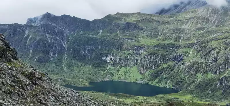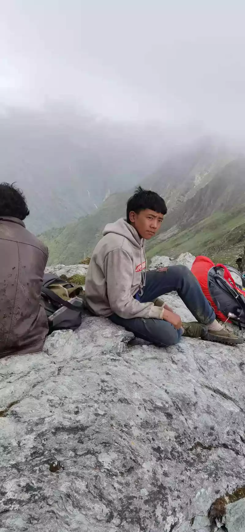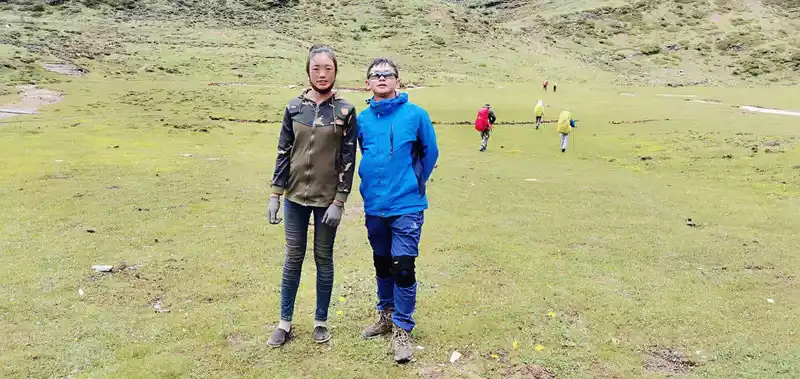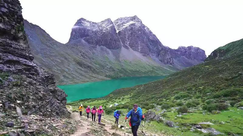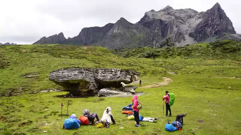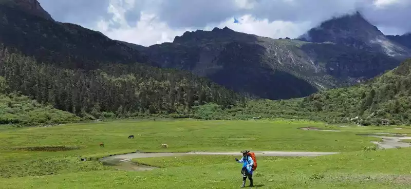green At 15 p.m., we arrived at the Rock Stone, also known as the Butterfly Stone, which is an important symbol of the Rock Line due to its resemblance to a butterfly. I also took a photo with a local Cola seller Dolma here, a bottle of Coke 20, the group photo is free, Dolma is really tall, tall and fit, at least 1.78 meters, which makes me beautiful. Not far from the butterfly stone, there is a plateau sea that is said to be the tears of the mountain god, where you can see your past life. It was getting darker and it was going to rain, we picked up our pace, on this day we crossed 4 passes, and the walk was really about to collapse, especially the section that was about to collapse, because the original plan to camp in the snake tail camp was temporarily changed to the snake head camp, and we walked another 2 kilometers, and we walked 15 kilometers that day, and the moment I arrived at the camp I was already very difficult. Lao Hu and I were bastards, and the heavy rain that night at Shekou Camp witnessed true feelings. In particular, Brother Lan Ziguang cooked dinner in the rain, and Dingdong adjusted the tent in the rain, and Brother Baishui Xiaoma was forced to mess around, which was really singing and crying, shocking the world, and crying ghosts and gods. The luckiest thing is that I missed dinner due to heavy rain, and then I went to the herdsman's house next to me to hide from the rain and roast the fire, and I happened to meet the herdsman stir-fry, the lettuce stir-fried pork he fried was really delicious, and he also smoked for me, you must know that this is free, which moved me very much, and the next day I sent him two cans of gas, and a pack of sausages was placed in front of his door in return. It rained too much for too long that night, and Lao Hu's tent and I got into the water and didn't sleep well all night.