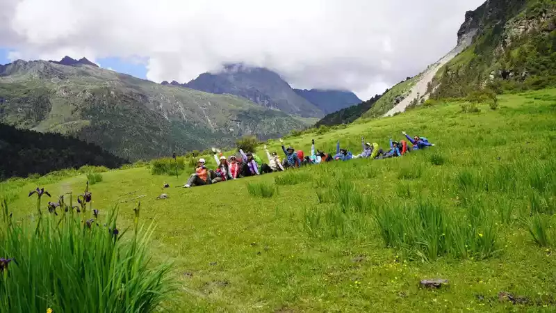 The remaining group of 12 of us continued to move forward and arrived at the Tibetan cattle farm at noon, which can be described as a real paradise, as sung in the song of yearning for Aden, "green grass, colorful sea of flowers, full of cattle and horses, natural pastures, ice springs flowing, blue sky and white clouds", the teammates strolled on the plateau ranch for a long time, and left unsatisfied after lunch.