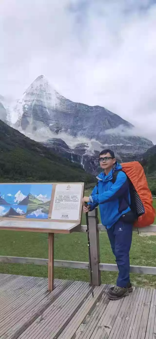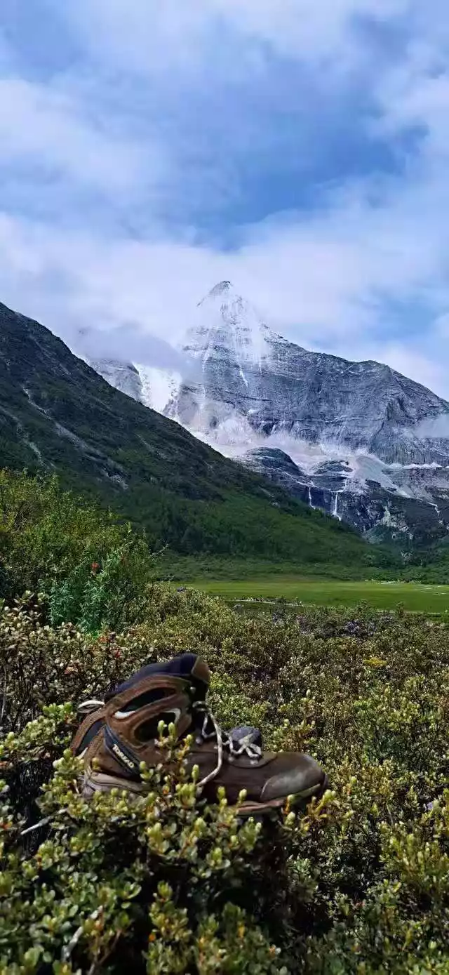 After crossing a pass, you will begin to enter the Daocheng Aden Scenic Area, and the three sacred mountains of Yang Maiyong, Xia Nuo Dorji, and Xian Nai Ri will come into view from left to right, which is magnificent. Below is the sea of milk and the sea of five colors, and the scenery is also very beautiful. But due to the hurry to walk, the weather was not very good, and I didn't see that beautiful picture. Everyone was also a little aesthetically tired, did not stop too much, and walked along the scenic road for 4 hours. We rushed to the battery car ticket point in the scenic spot, Comrade Lao Hu had arrived a long time in advance, he finished the 8-kilometer mountain road in more than 2 hours, and my hiking shoes were also clipped, and I left it in the Nuorong Cattle Farm under the sacred mountain, which was a pair of camel shoes that had been worn for four years. Then we made up our tickets and took the bus out of the scenic spot. So far, the rock line has been successfully completed.