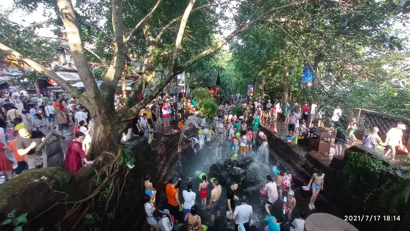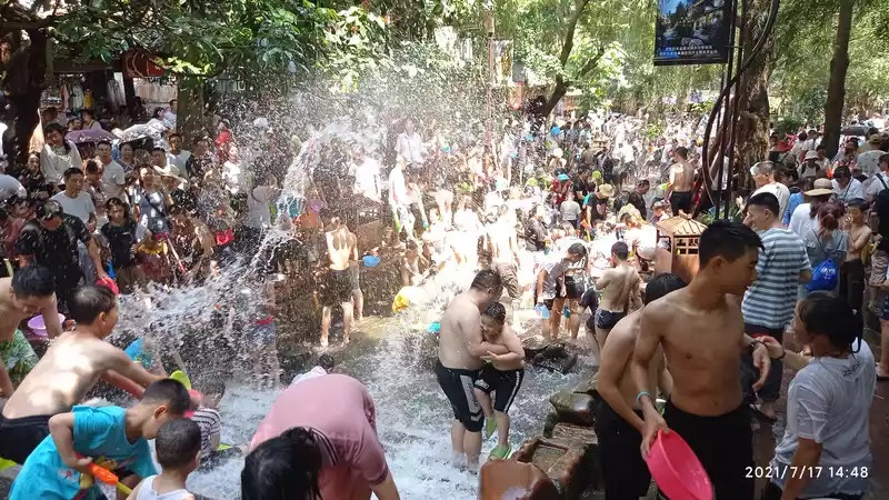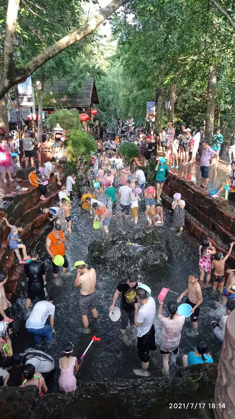 Next, follow the direction of the water flow all the way down, more than 2 kilometers of river, all children and adults playing in the water, one is happier than the other, they are all naked in the water and lingering in the water, there are many onlookers, more people who are ready to move, the voices are loud, and there are people side by side, basically it is difficult not to get wet clothes by water when passing here.
