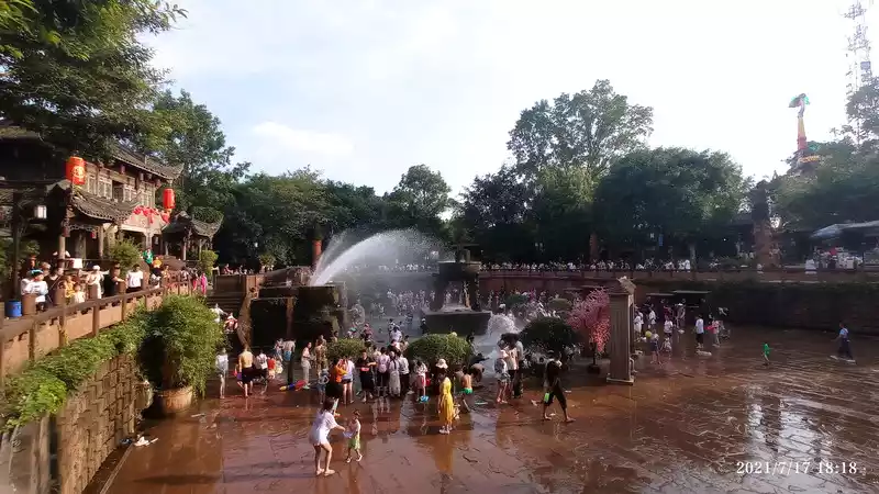 This is the location of the faucet after the gate enters, everyone is playing in the water here, because this is the first place to play in the water after entering the ancient town, the terrain is spacious, adults and children can't suppress their inner joy, and start playing.