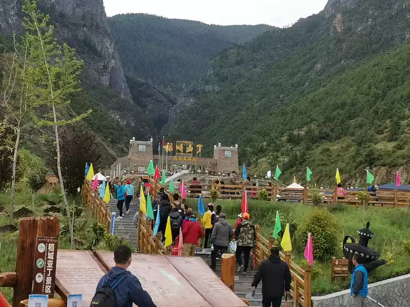 The hotel is only about 10 minutes' drive from the gate of the scenic spot, first go to the underground parking lot at the entrance of the scenic spot to park the car (private cars are not allowed to enter the Aden scenic spot, parking is charged on time), and then go to buy tickets. It takes about 50 minutes to take the scenic bus from the entrance of the scenic spot to the scenic spot. After getting off the bus, you can walk to the Pearl Sea on the right plank road, that is, the short line. Go straight for 400 meters to the ticket office and boarding point of the battery car in the scenic area, take a car from here to Luorong Cattle Farm (if you have good physical strength, you can also hike along the plank road), and then move to the milk sea and the five-color sea, which is a long line. You can also ride horses on foot to the first half of the Milk Sea and the Five Colored Sea, but the last steep road is not going up right away, so you have to climb it yourself.