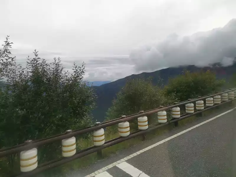was planning to walk around Xinduqiao in the morning, but it rained early in the morning. After breakfast, I headed back. With my obsession with 318, I must run the road before the highway. The rain also stopped when we set off, and we drove all the way to enjoy the gallery scenery along the Xindu Bridge, and it didn't take long for us to come to Zheduo Mountain. Although it is not a mountainous walk, it is also a good experience to walk backwards. Unfortunately, the heavens do not show beauty, and the fog on Zheduo Mountain is thick. There is a traffic jam in the direction of going up the mountain into Tibet, and I want to enter the observation deck to see, but it is full of people and cars, and I can't seem to see anything. Simply go down the mountain to avoid adding more blockages. The traffic flow into Tibet is very large, long-distance traffic jams, and old drivers who occupy the road and overtake and jump forward abound, and it is difficult to force them away even if the horn is broken.