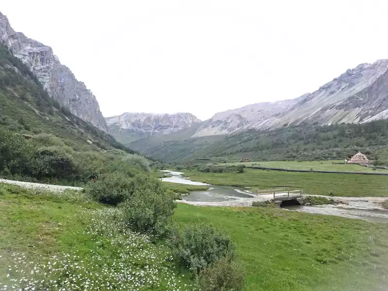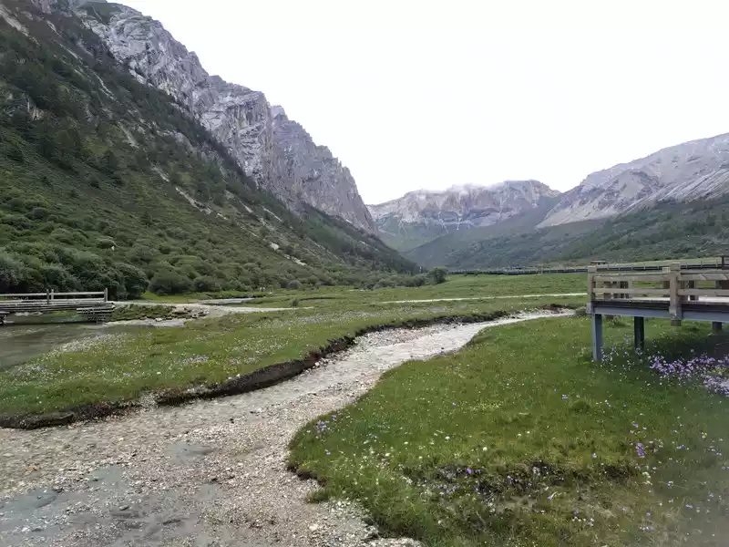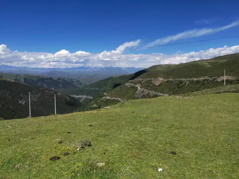 Today's departure was unfavorable, and less than an hour after departure, the wall of the right rear tire was cut by a falling rock. Changed the spare tire and moved along the G248 uneasily. This section of the flood-damaged road is section after section, and many places can only be passed by one car. It wasn't until I entered the G350 Panda Road that the road conditions improved. The weather is good, and you can see the Yala Snow Mountain from the observation deck. From the observation deck all the way up, from here, the alpine meadow is beautiful, like walking through a gallery.
