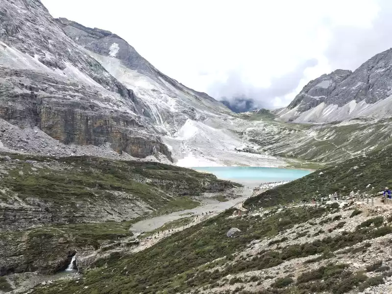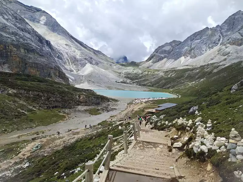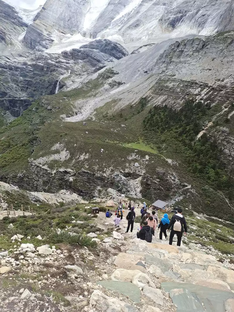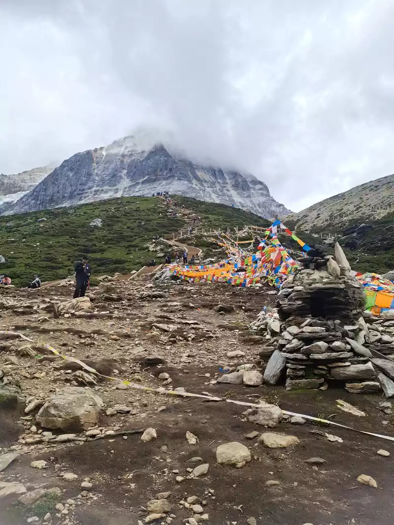 The road from the end of the Ma Gang to the Milk Sea and the Five Colors Sea is more difficult to walk, and it is all steep slopes. In addition, high-altitude hiking, a short break in three steps, and a big rest in five steps. Along the way, there were countless people who took oxygen. The pig teammates had just finished walking on the wooden plank road of the Luorong Cattle Farm and couldn't keep up with us. Worried that he would hold back, I also carried my backpack over. Carrying a heavy load all the way, he was still getting farther and farther away from us. At the fork of the Milk Sea and the Five-Colored Sea, I single-handedly headed to the Five-Colored Sea, the highest altitude, and they took a flat road to the Milk Sea to wait for me to meet. While climbing the desperate slope, I met a 78-year-old man who was physically and mentally great.(Tips: If you want to go to the Five Colors Sea, go up the desperate slope on the right, and then go down from the plank road to the milk sea on the left, so that it will be relatively easy to walk)