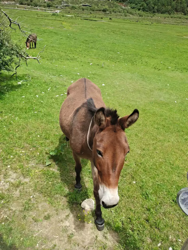 The little brother said that it was not very comfortable, maybe it was contrary, we didn't dare to stay for a long time, gave him some medicine, took a few photos, and hurried down the mountain. When we went down the mountain, there was another black moth in the navigation, which almost made us return the same way. Fortunately, we met a local Tibetan who showed us the way. The road down the mountain is a cement pavement, although it is not as good as going up the mountain, but it is also winding and narrow, and concentrating on driving is the top priority.
