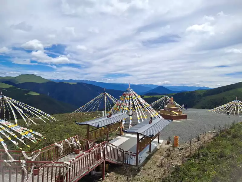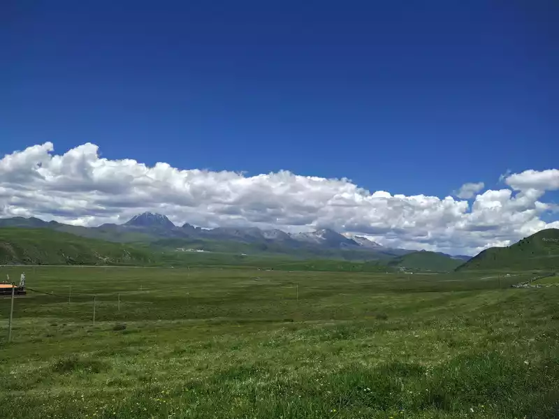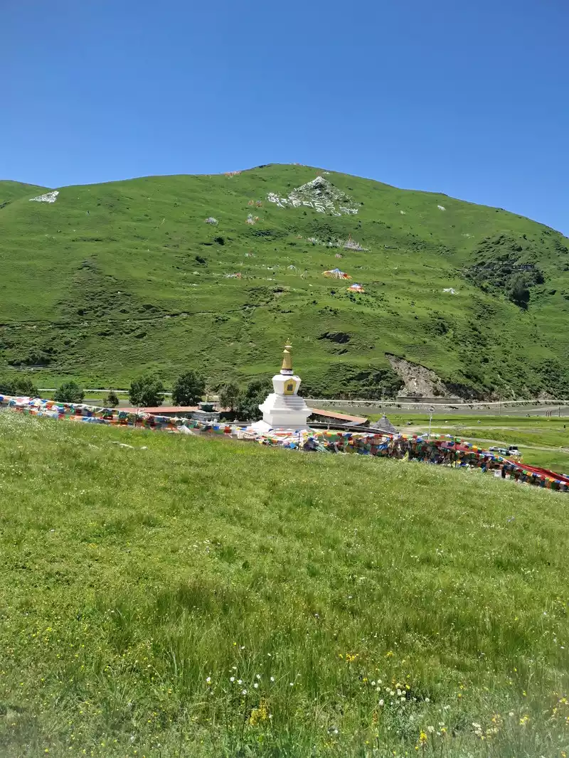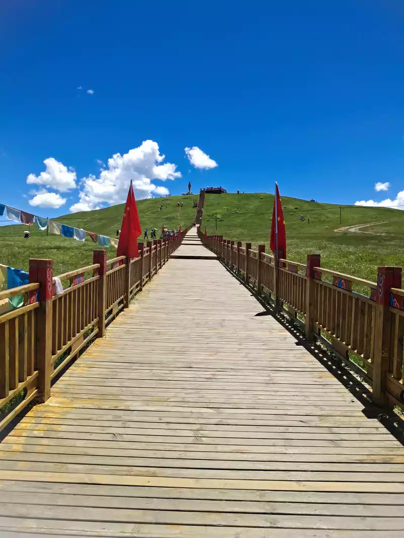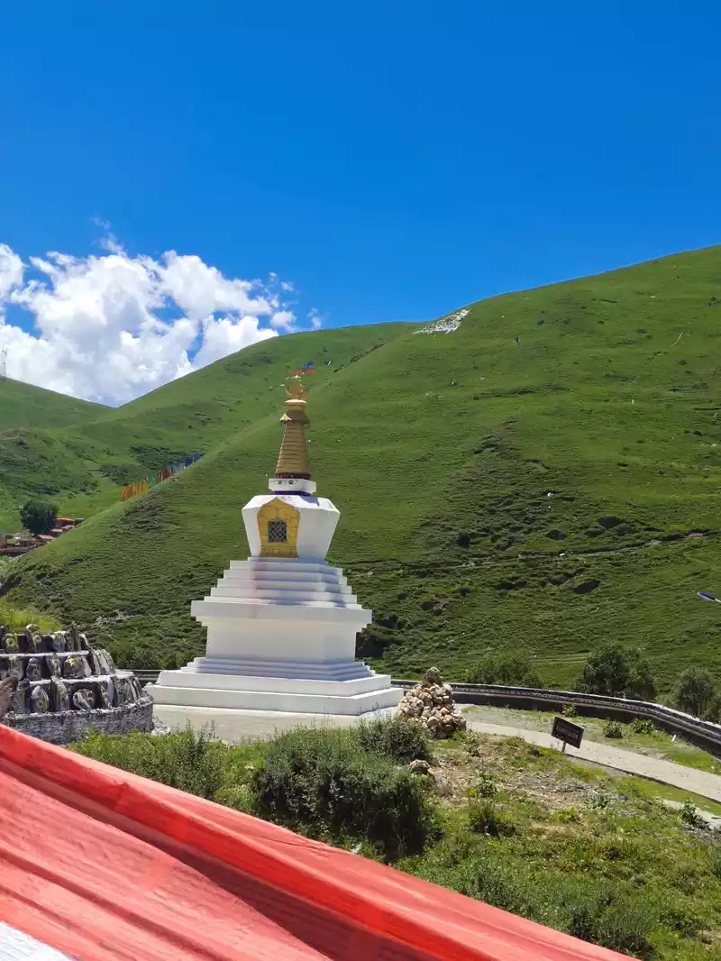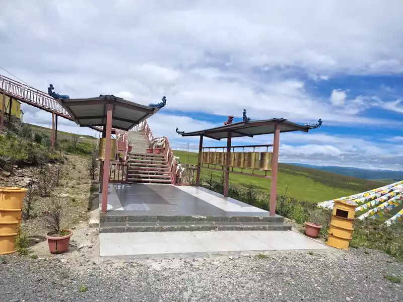 Americas In Bamei Town, we changed to new tires and had lunch. Bamei is more than 20 kilometers from Tagong Grassland, and it takes less than half an hour. Passing by Moshi Park, I was not too interested in the stone, and I didn't go in because I was in a hurry. At the entrance of Tagong Grassland is a wide free open-air parking lot. The wooden plank road goes straight to the top of the mountain, at an altitude of more than 3,750 meters. Standing on the observation deck at the top of the mountain, you can enjoy the beautiful scenery around you. Under the blue sky and white clouds, the empty grassland, the snow-white pagoda, and the golden dome of the Buddhist temple shine in the sun. The Yala Snow Mountains loom in the distance, and the white top of the mountain can't tell whether it's clouds or snow.