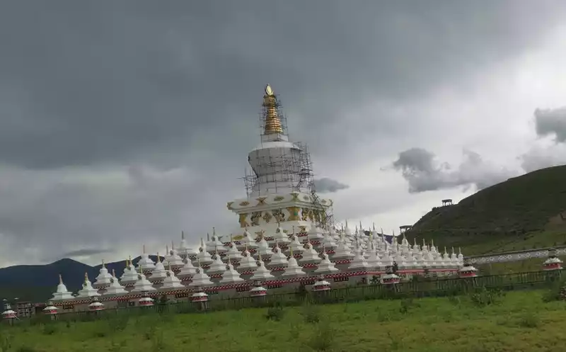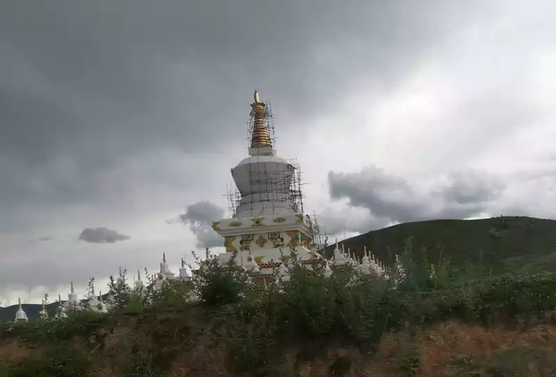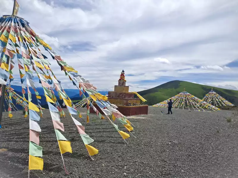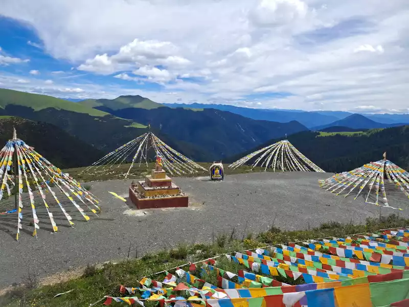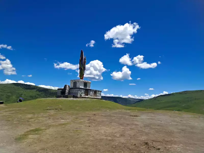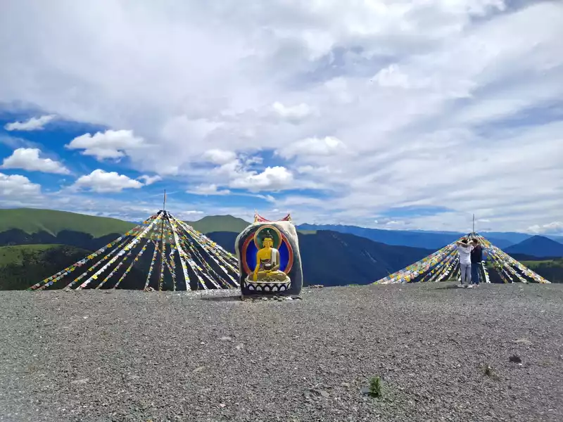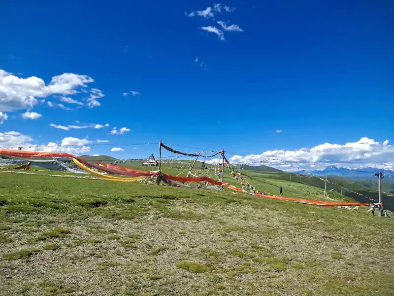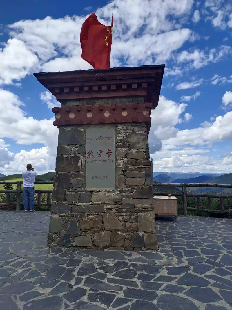 Americas In Bamei Town, we changed to new tires and had lunch. Bamei is more than 20 kilometers from Tagong Grassland, and it takes less than half an hour. Passing by Moshi Park, I was not too interested in the stone, and I didn't go in because I was in a hurry. At the entrance of Tagong Grassland is a wide free open-air parking lot. The wooden plank road goes straight to the top of the mountain, at an altitude of more than 3,750 meters. Standing on the observation deck at the top of the mountain, you can enjoy the beautiful scenery around you. Under the blue sky and white clouds, the empty grassland, the snow-white pagoda, and the golden dome of the Buddhist temple shine in the sun. The Yala Snow Mountains loom in the distance, and the white top of the mountain can't tell whether it's clouds or snow.