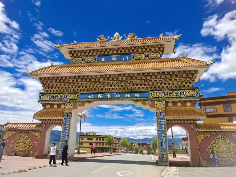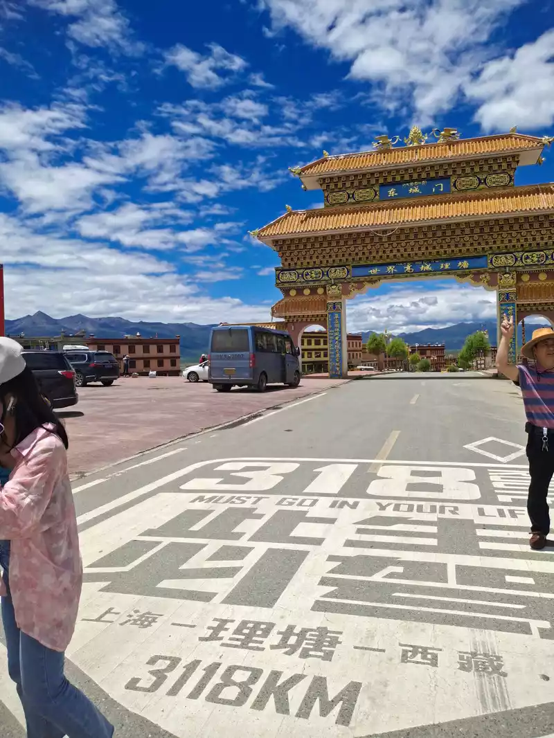 I arrived at Litang at noon. The unique blue sky of the plateau looks purer under the embellishment of white clouds, and the majestic East City Gate spans the 318 National Highway, and the golden characters of "World High City Litang" on the city gate inform the world that this is the highest county seat in the world, the place where the sixth living Buddha Cangyang Gyatso is reincarnated, and it is also the hometown of Internet celebrity Kangba Hanzi Ding Zhen.