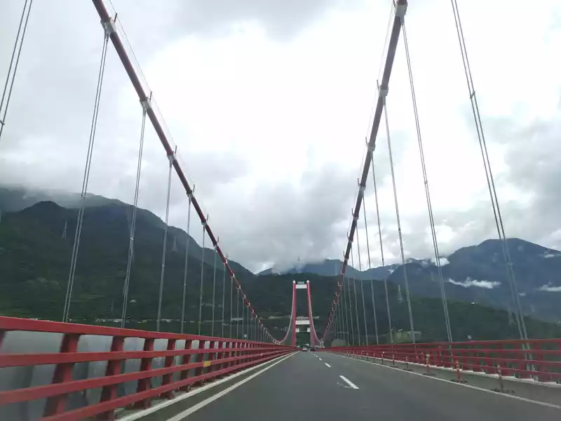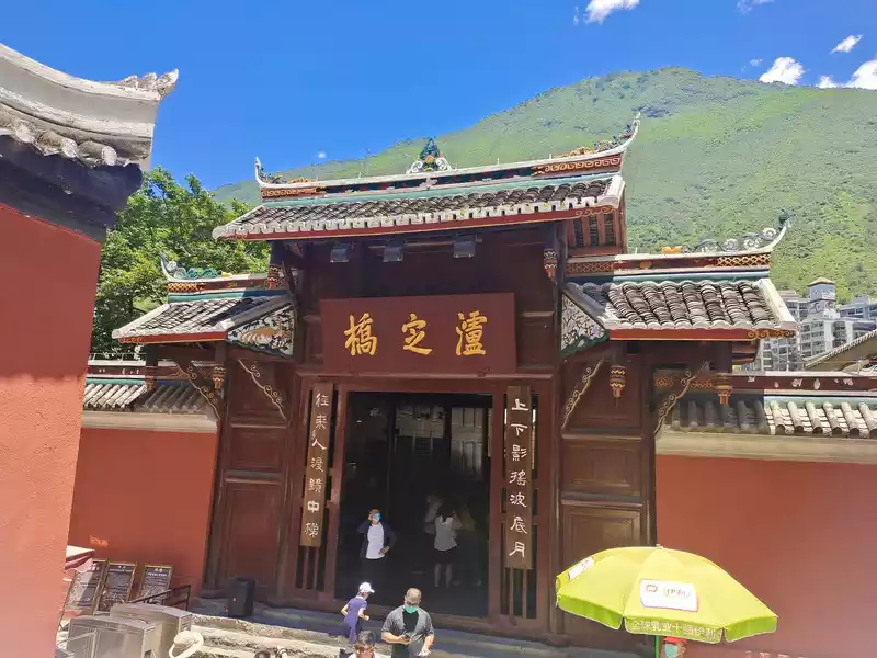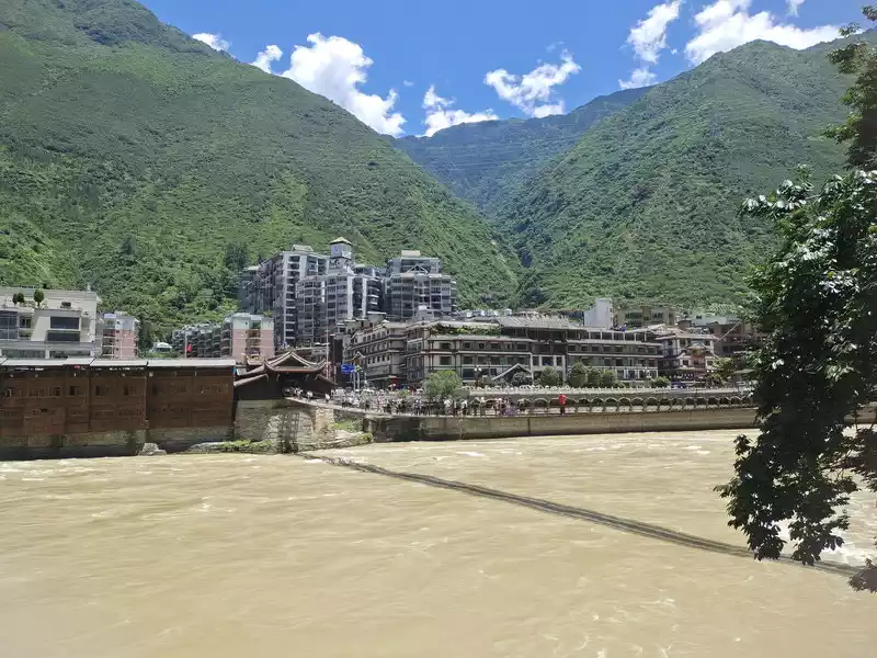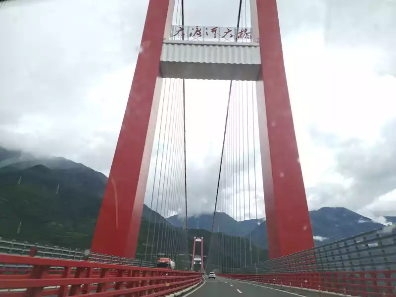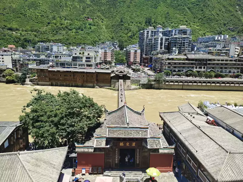 When you come to Luding County, you have to go to Luding Bridge to check in. The small Luding County has many cars and narrow roads, and I missed the free parking shop for eating, and when I arrived near Luding Bridge, all the parking lots were full. We had to drive forward, cross the bridge and go up a steep slope to National Highway 318, and we found a place opposite the Luding Bridge where we could park and eat. Parking is 20 yuan, unlimited time, we only parked for less than 1 hour, a huge loss. After eating, we walked along the Dadu River to Luding Bridge, there were too many people queuing up to get on the bridge, and we had to hurry in the afternoon, so we took a photo at the bridgehead and left in a hurry.