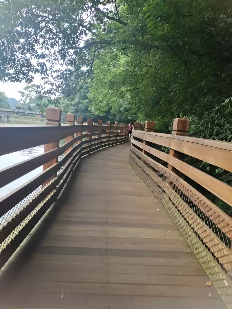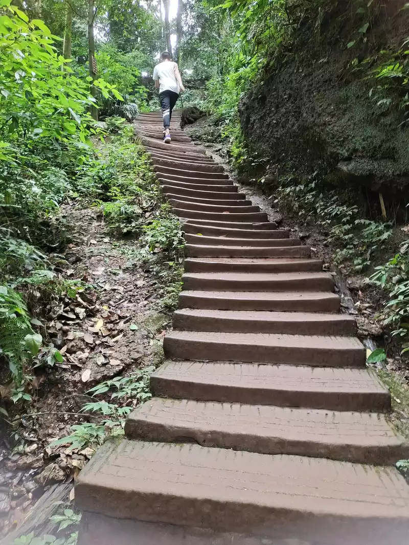 Qingcheng Mountain is one of the birthplaces of Taoism in our country, and has had the reputation of "Qingcheng is the world" since ancient times. The green Qingcheng Mountain is a good place to escape the heat, and the mountain breeze is refreshing. The mountain is densely vegetated and shaded by greenery. The pig teammates said they couldn't climb anymore and were willing to wait for us by Yuecheng Lake at the foot of the mountain. My little brother and I didn't have time to go except for the Laojun Pavilion at the top of the mountain, and we spent more than two hours climbing the mountain. Tianshi Cave, Shangqing Palace, Chaoyang Cave, although we didn't have time to look closely, but we also left our footprints wherever we went. I hurriedly rushed to the ropeway before it stopped, queued for more than half an hour, and got on the last cable car down the mountain.