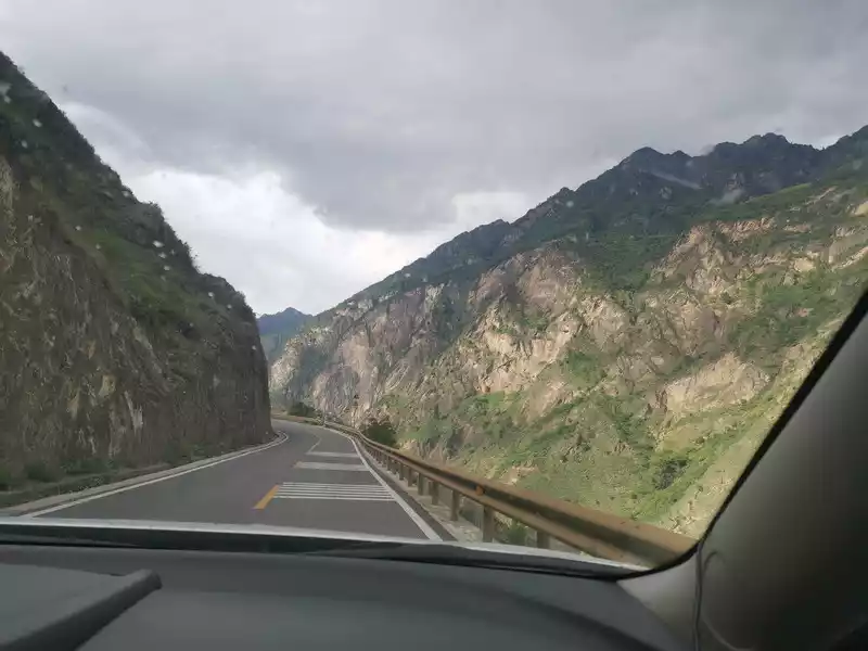 road from the visitor center to Jiaju Tibetan Village can be described as thrilling, looking from the bottom up, the Z-shaped narrow road is winding and winding, it seems that there are many roads, In fact, there is only one. There is a cliff on one side and a cliff on the other, and the drop is very large.