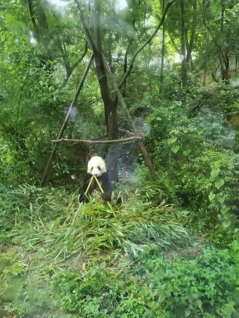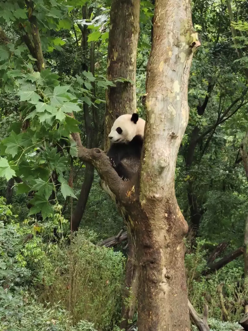 At the beginning of the summer vacation, the scenic spot has opened the crowd mode. We went a little late, almost 10 o'clock, and we had to see the pandas as soon as possible. Pandas are more active in the morning and are sleepy at noon. We walked around for nearly two hours and saw three or four pandas, and many of the panda villas were empty. Sleeping on the trees, eating bamboo, the round people looked calm, completely ignoring the hustle and bustle of tourists outside the venue.