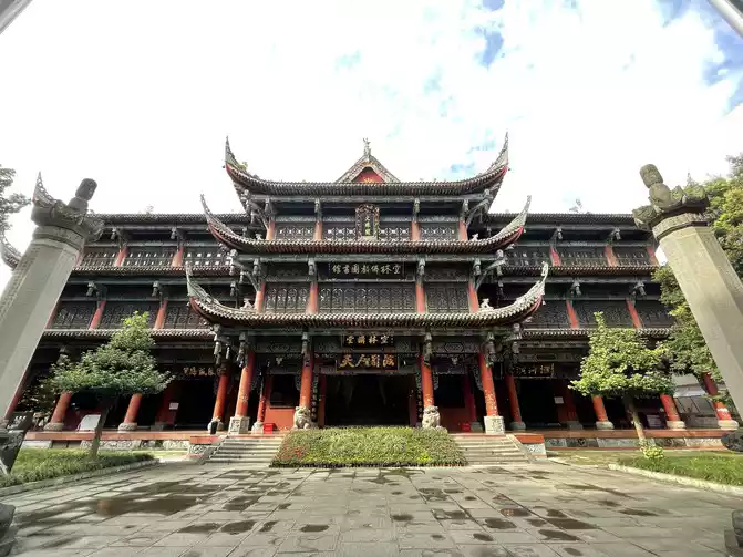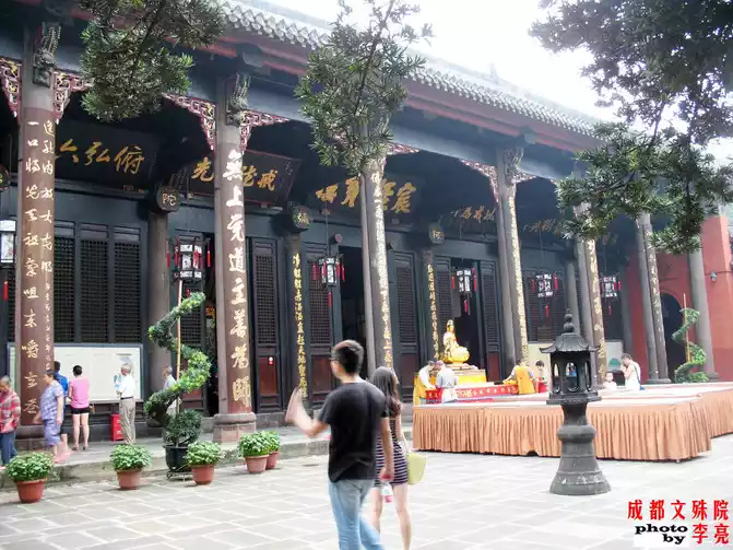 There is a park around the temple and a magnificent sutra pavilion. Occasionally entering the fragrant garden next to it, it is actually a tea room, and the people of Chengdu are leisurely tasting tea, chatting, eating melon seeds, and it is very comfortable.