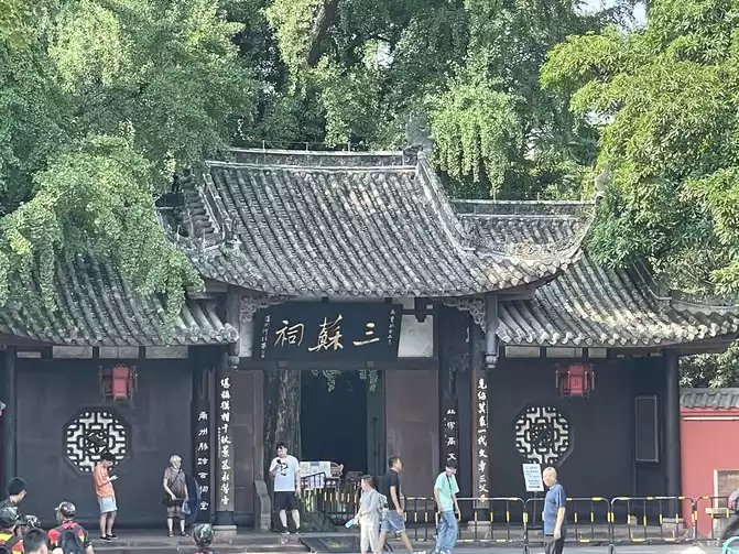Tickets for the Sansu Shrine are 30 yuan per person, but the Sansu Memorial Hall opposite is free, and the latter is naturally chosen. Starting from understanding Su Xun, followed by Su Shi (Zi Zhan) and Su Zhe (Zi You). The residents of the entire block are quite casual, playing poker and mahjong.