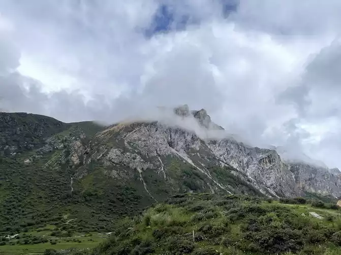 continued downward, returning to Zhacan Collapse in about two hours. Another sacred mountain is called Xian Nai Ri, which means Guanyin Bodhisattva, with an altitude of 6,032 meters, in the other direction of Chonggu Temple, we plan to go tomorrow.
