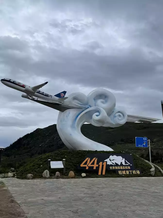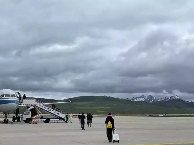 Last night, I received a notice that the flight from Daocheng to Chengdu was changed from more than eight o'clock to half past eleven o'clock. Depart from the hotel at nine o'clock, charter a car for 200 yuan, and arrive at Daocheng Airport at an altitude of 4,411 meters.