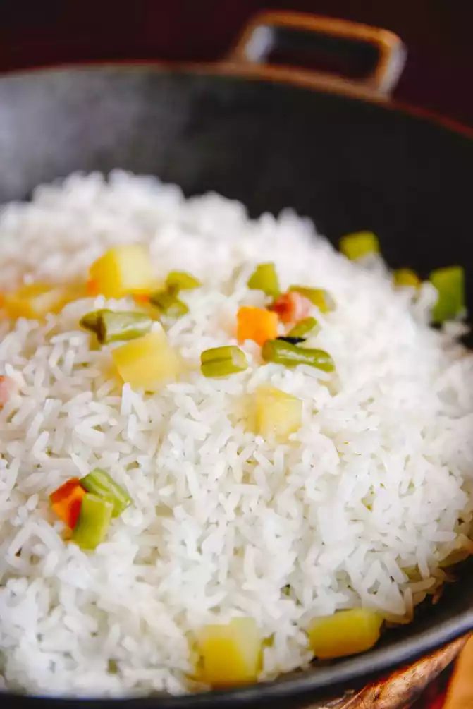 Kong dry rice: Kong dry rice is my favorite texture, bacon, pumpkin and potatoes and other vegetables are added when steamed, the taste is really good, fragrant~!