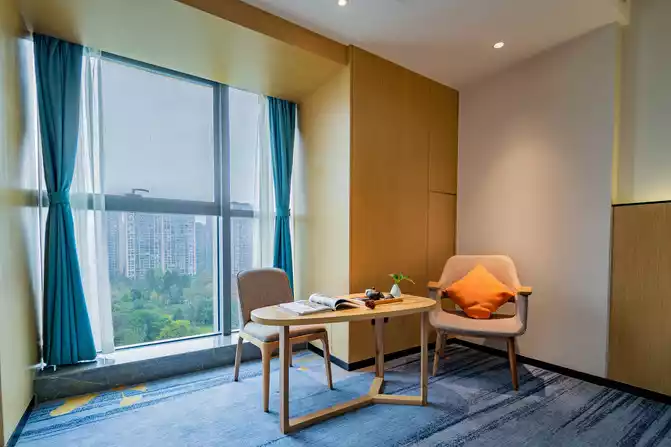 Hotel style: The hotel is located near the East Railway Station, which is a good place for transit, if it is a high-speed rail to Chengdu, it is basically at this station, and to Leshan, you can also take the bullet train directly at this station, which is very convenient. And unexpectedly found that there are 3 cute pet clerks in this store, who are particularly cute and relatives. Next to the hotel is a huge municipal park, where you can walk and jog in the morning and evening, which is particularly comfortable. And a variety of styles of rooms to meet our needs.