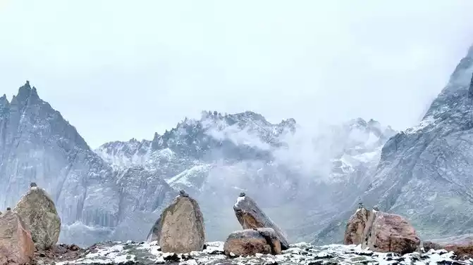 The snow on this mountain is getting heavier and heavier, so we are ready to go down the mountain to return to Aba County, and make up for the first attraction on the way back.