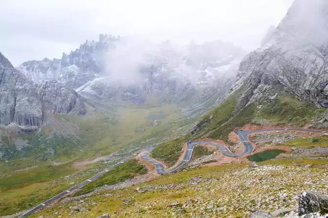 a look at our road up the mountain on the mountain, which can be described as eighteen bends of the mountain road, shuttling between the snow-capped peaks of this mountain, just to see the most beautiful scenery.
