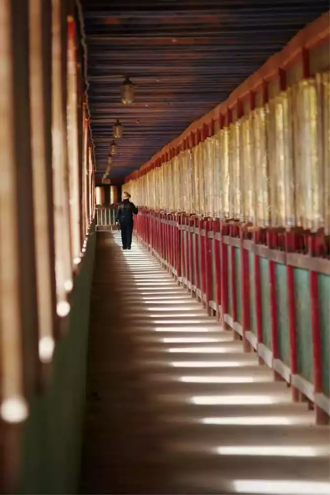 There are also prayer wheels on the left and right sides of the temple, and the masters who practice in the temple will walk in from one side from time to time and turn them one by one.