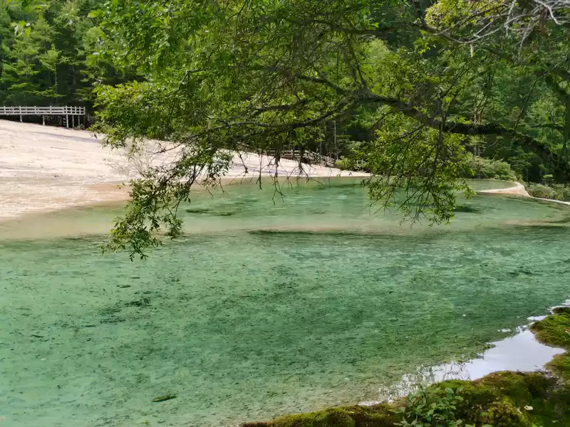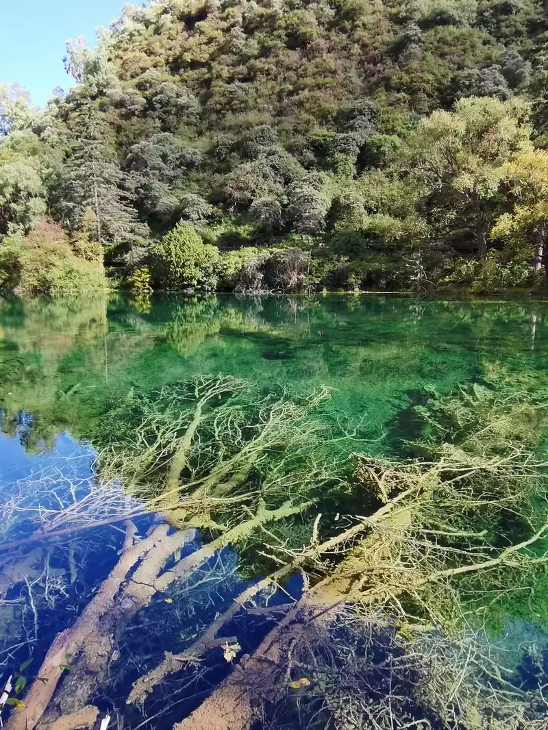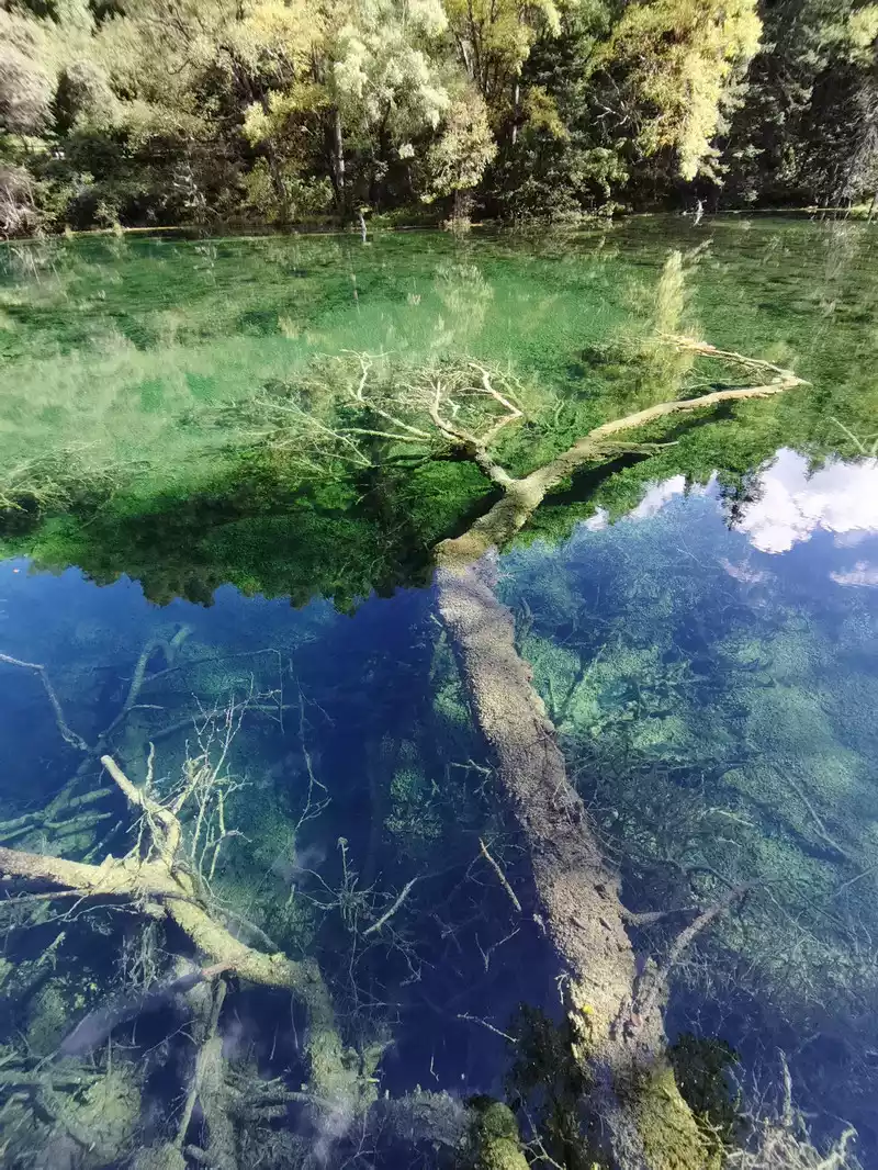"Qinglong Sea", the landscape of Haizi is like Jiuzhaigou Scenic Area, and the sea water is very clear, and the seabed sediment is clearly visible.