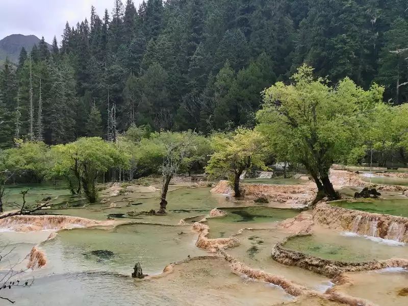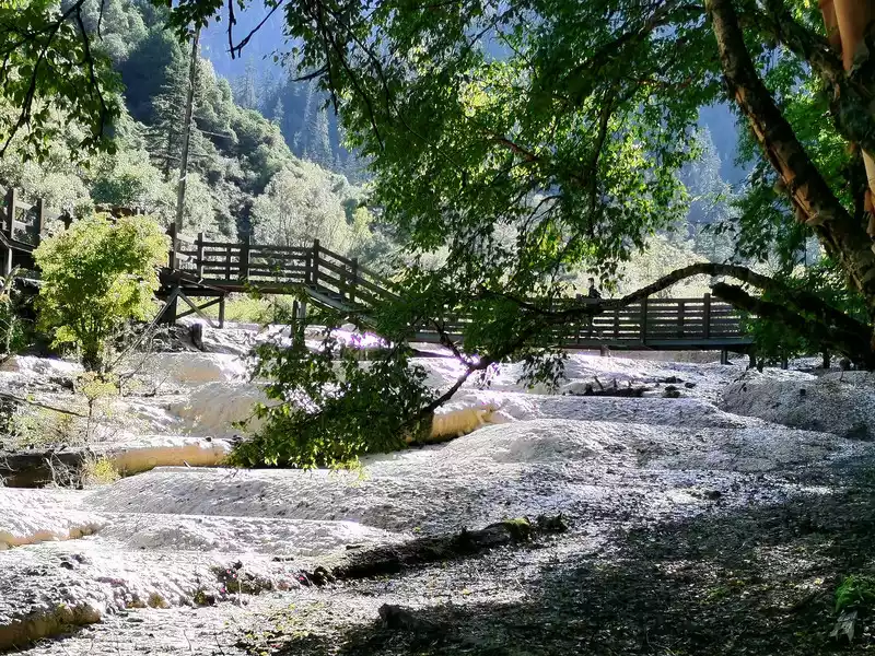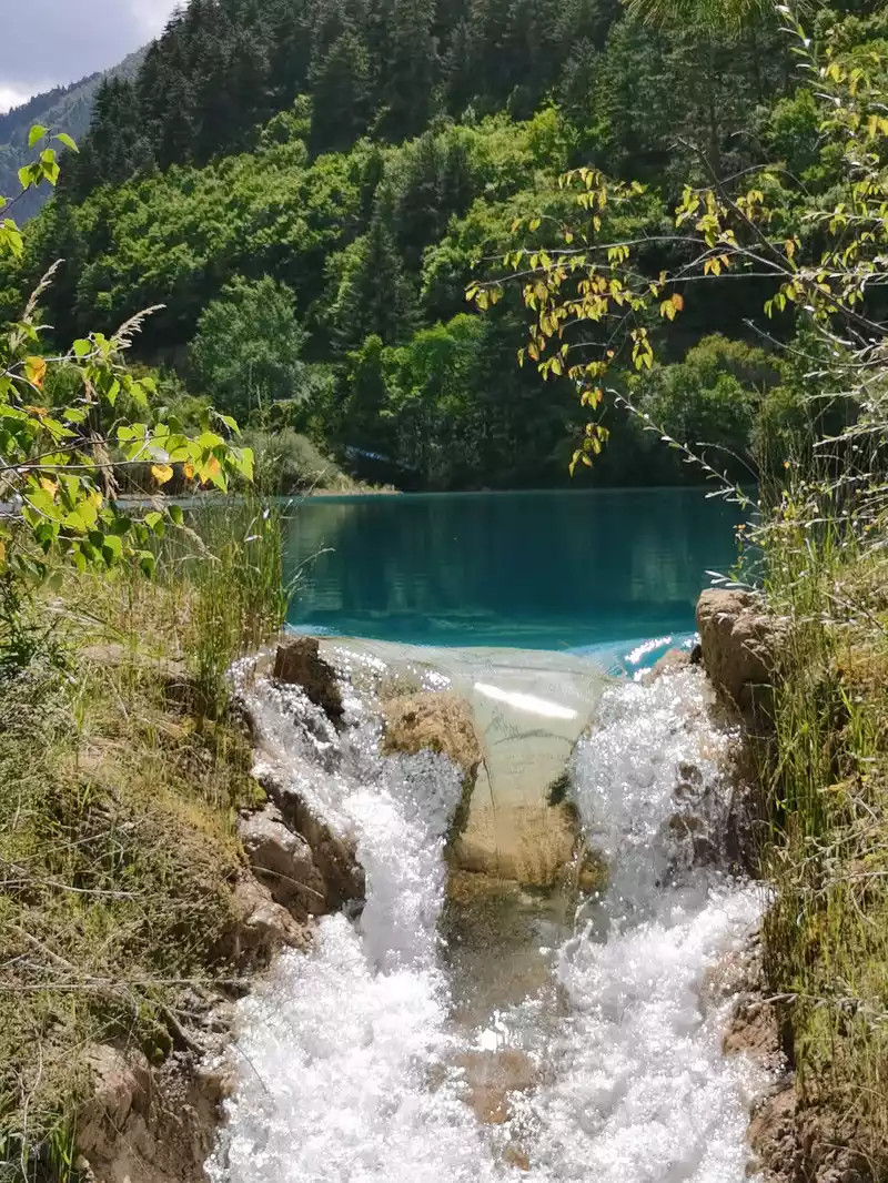 Turn into the lower road to the "Fairy Bridge" bus point, and go down to the exit of the scenic spot for a few minutes to end the tour of the fairy pool. The fairy pool is not big, and after two or three hours of walking, it does integrate the characteristics of Huanglong and Jiuzhaigou. The innkeeper once told me that there are not many domestic tourists who come to the fairy pool, mainly foreign, especially Korean and Japanese, and the scenic spots are small and exquisite.