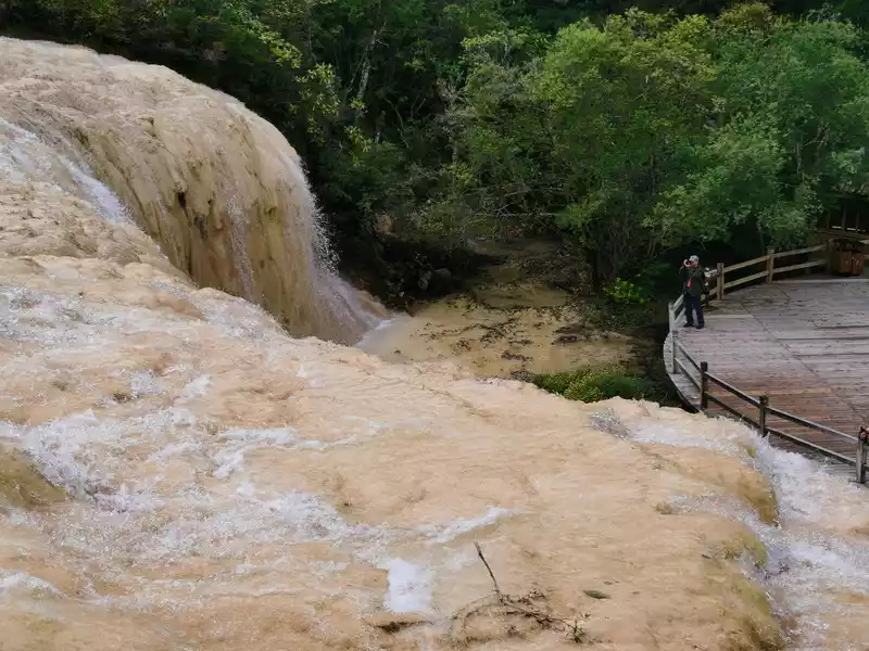 "Water Curtain Cave" and "Jinyin Beach", calcified landforms, are the same as those seen in Huanglong Scenic Area the day before yesterday.